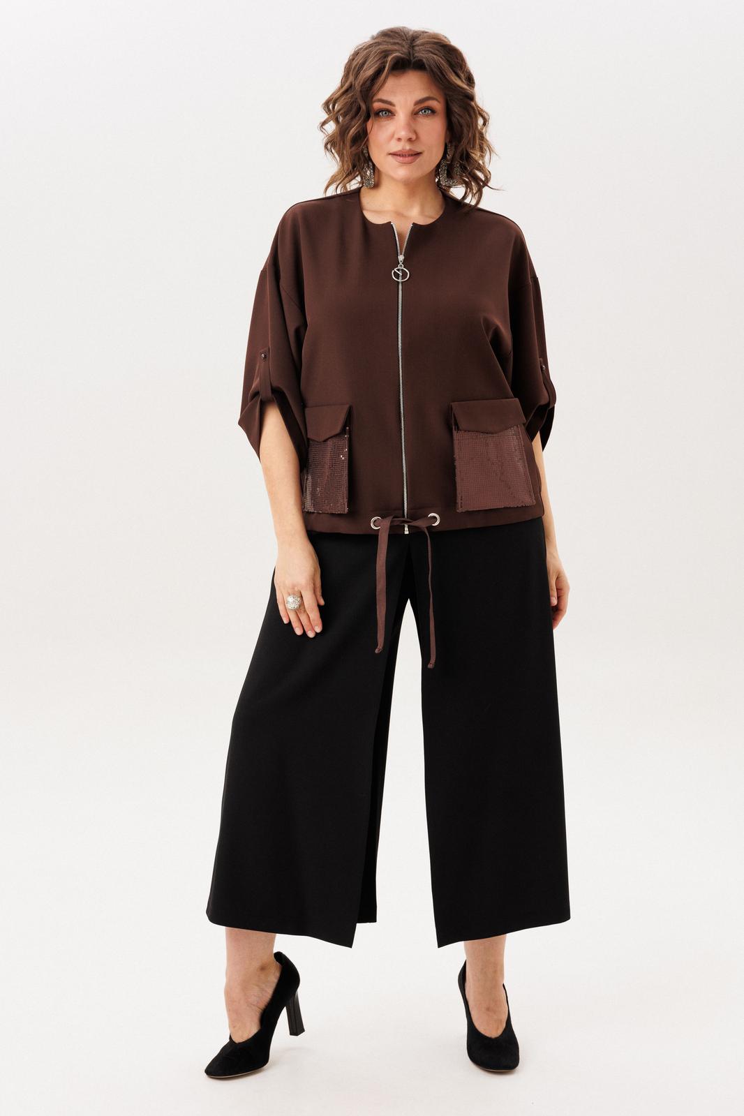 Этот джут в цвете «мокко сияние» от Анелли - воплощение универсальности: он столь же органично сочетается с лёгкими кюлотами и изящными босоножками, как и с классическими джинсами, являясь идеальным связующим звеном между дневной простотой и вечерним блеском.
