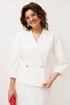 Жакет в нежном оттенке «лебедь» словно наполняет образ лёгкостью и спокойной уверенностью. Полуприлегающий силуэт мягко подчеркивает линии фигуры, создавая аккуратный и женственный образ без излишней строгости, а V-образный вырез добавляет утончённости и визуальной лёгкости. Двубортная застёжка украшена красивенными золотыми пуговицами, которые деликатно притягивают взгляд и придают жакету благородное сияние, делая образ более выразительным и элегантным. Рельефы по спинке и полочке формируют изящную посадку, а прорезные карманы в рамку становятся лаконичным акцентом, подчеркивающим продуманность каждой детали.