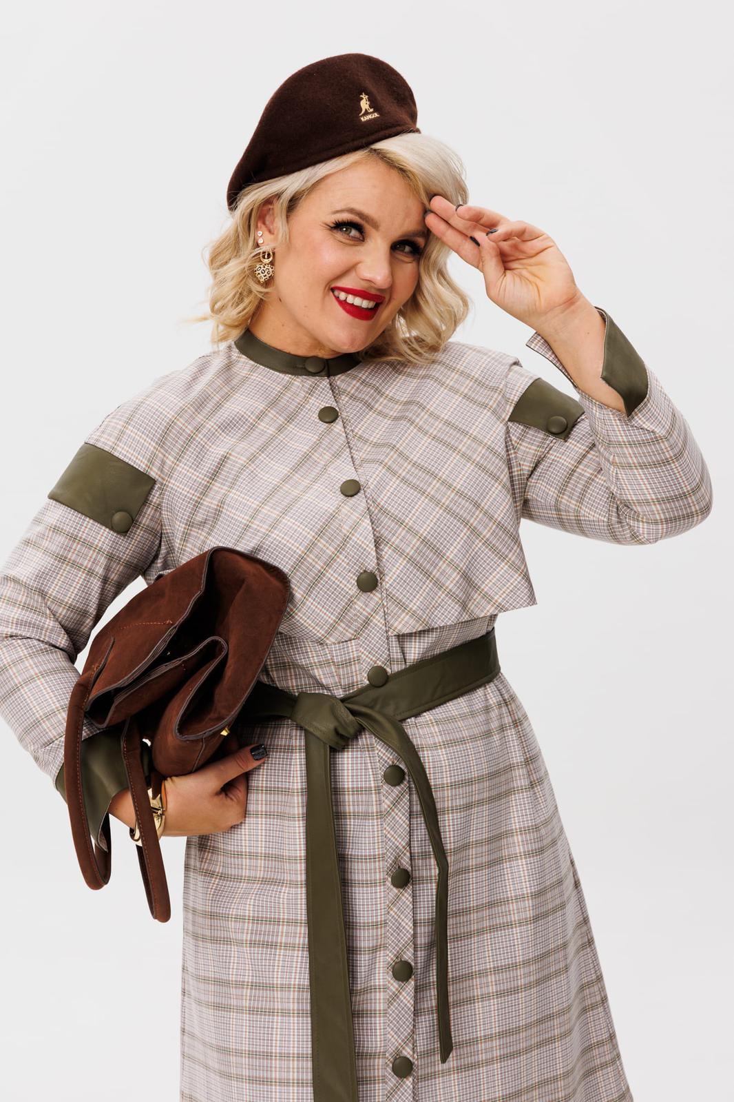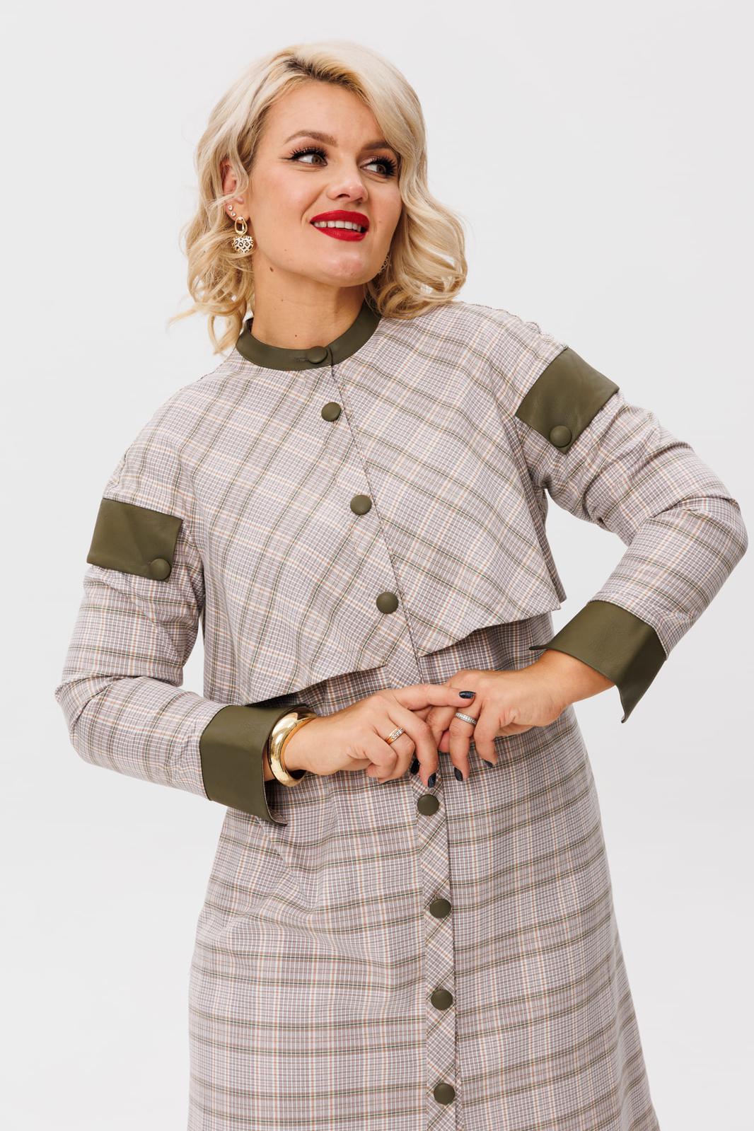 Элегантное платье прямого силуэта, выполненное из высококачественной костюмно-плательной ткани с изысканным клетчатым рисунком, станет идеальным выбором для уверенных в себе женщин. Эта модель, вдохновленная актуальным стилем «милитари», подчеркивает целеустремленный образ и индивидуальность своей обладательницы.
