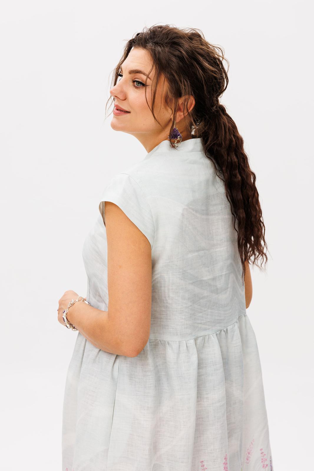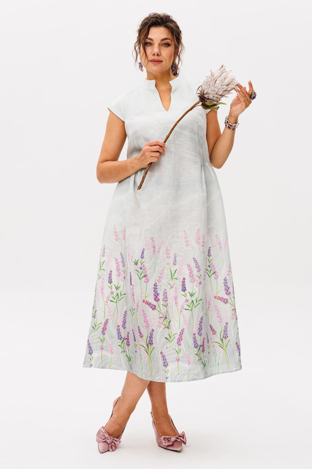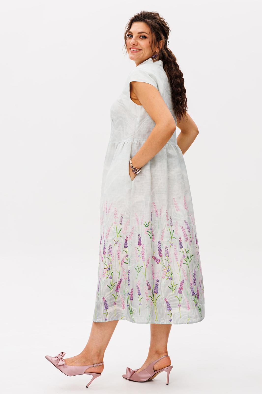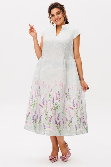Это платье из благородного беларусского льна в цвете лавандовый аромат - истинная поэзия женственности, воплощенная в ткани.