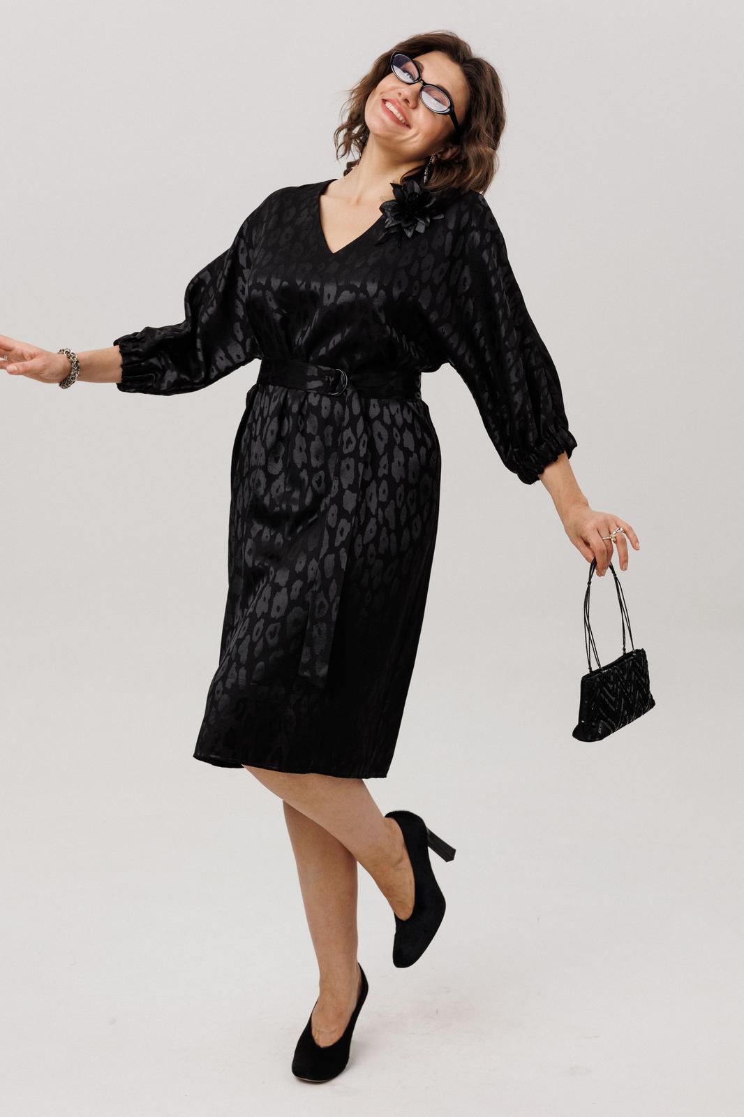 Это элегантное платье с прямым силуэтом станет идеальным дополнением вашего гардероба. Оно выполнено из легкой ткани с изысканным принтом в цвете «шелковый хищник», который добавляет наряду оригинальности и шарма.