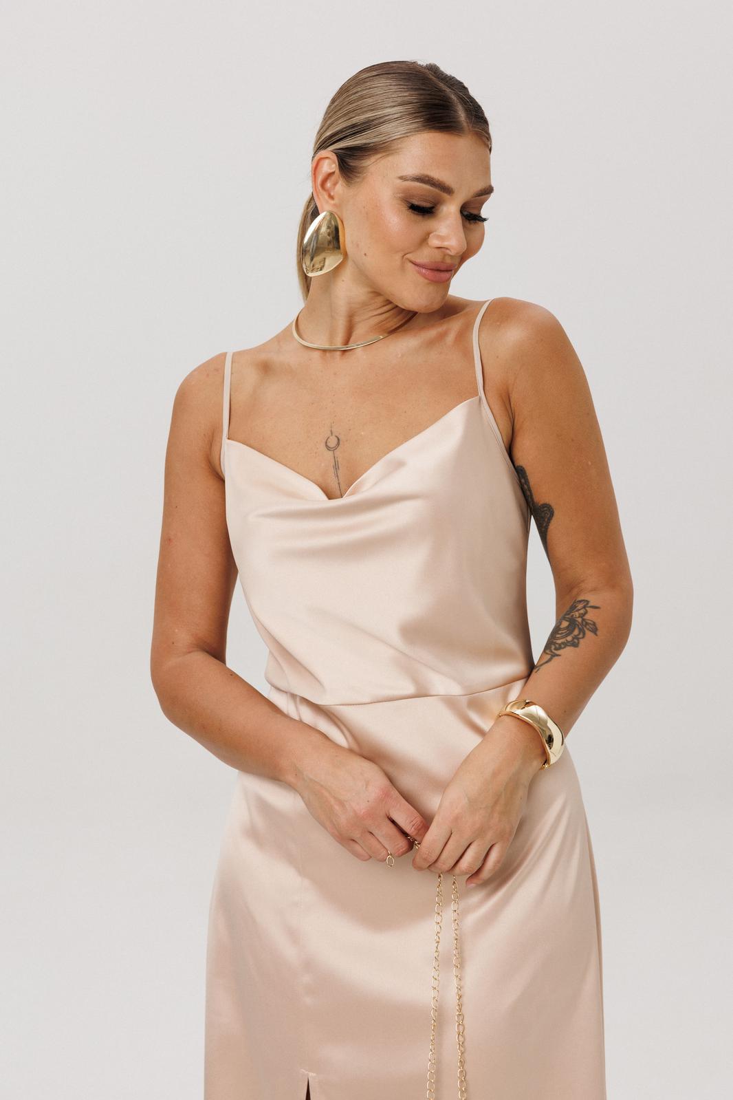 Платье в цвете «сливочный латте» не оставит вас равнодушными, окунитесь в эту магию, и ваш вечер будет незабываемым.