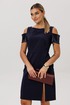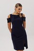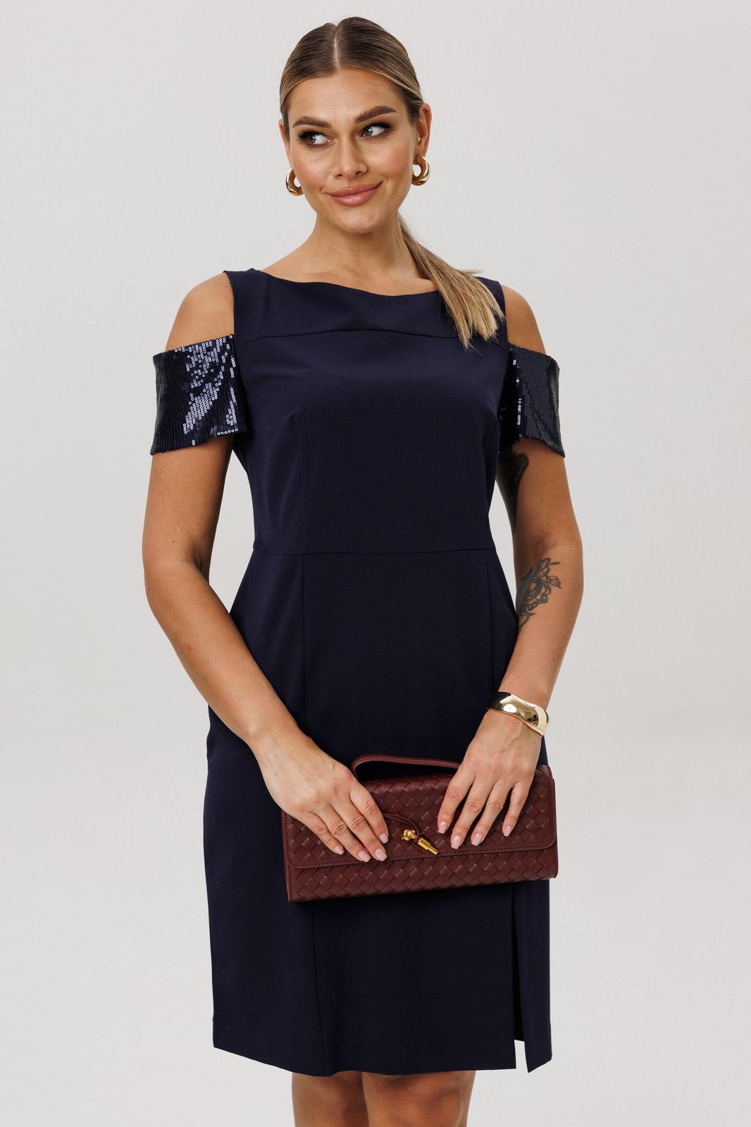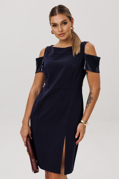 Полуприлегающий силуэт с открытой линией плеча и акцентным элементом на рукавах выгодно подчеркивают достоинства, выделяя вас.
