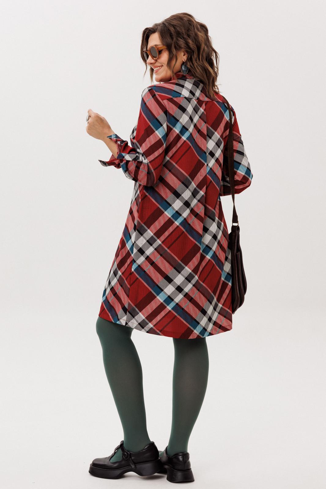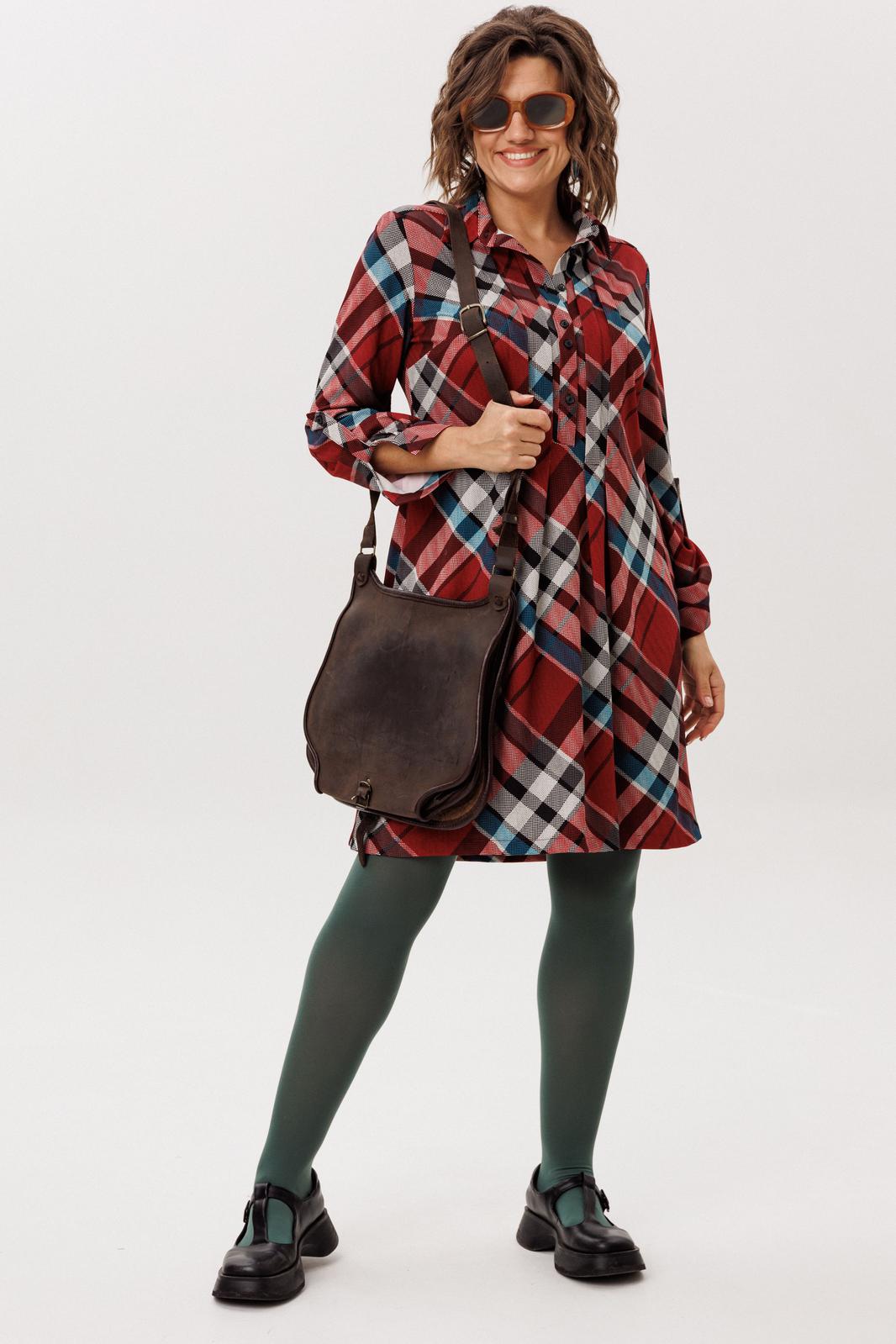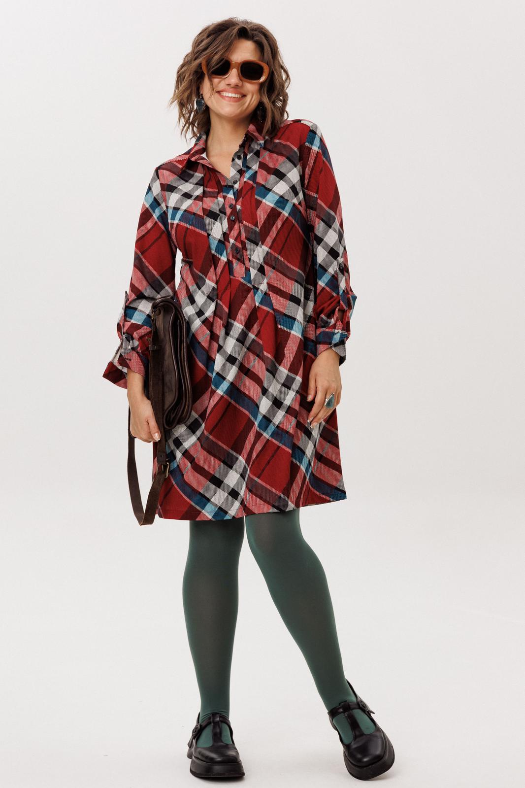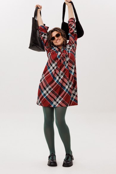 Застежка на пуговицах в верхней части дополнена двумя мягкими складками, которые придают платью лёгкость.