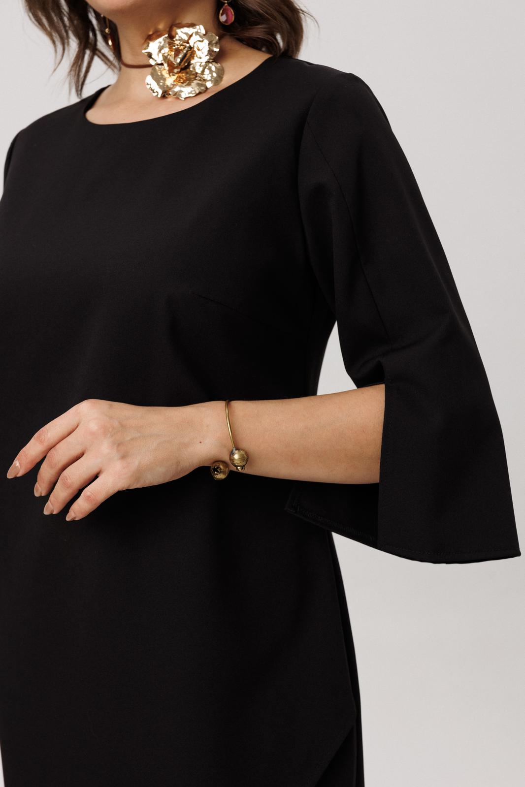 Идея комфорта элегантно воплощена в соблазнительном разрезе на бедре, который обеспечивает не только свободу для зажигательных танцев, но и добавляет образу пикантную ноту. Молния на спинке гарантирует идеальную посадку по фигуре.