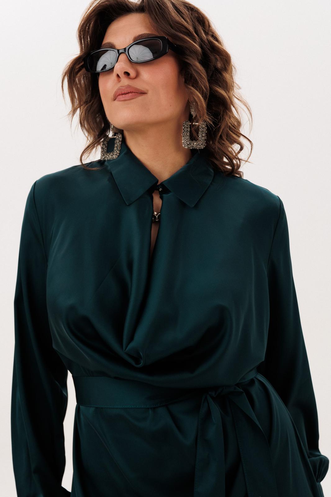Это безупречная альтернатива классическому платью, где каждая деталь работает на создание уверенного и самодостаточного облика. Роскошь шелка и игра фактур делают этот наряд идеальным выбором для вечернего выхода или торжественного мероприятия, а приложенный пояс позволяет менять акценты, оставаясь воплощением элегантности в любом прочтении.