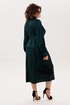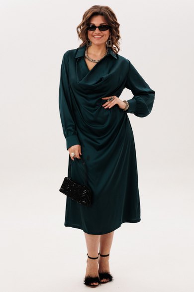В центре внимания - изысканная архитектура верха: неординарный воротник с застежкой на пуговицу можно заложить строгими графичными складками или же оставить свободно ниспадать, играя с формой. Элегантная драпировка, расходящаяся от пояса мягкими волнами, создает скульптурный объем спереди, превращая лаконичный крой в настоящее произведение искусства. Длинный втачной рукав завершается аккуратным манжетом, подчеркивая аристократичную сдержанность образа.