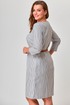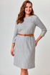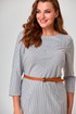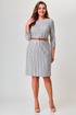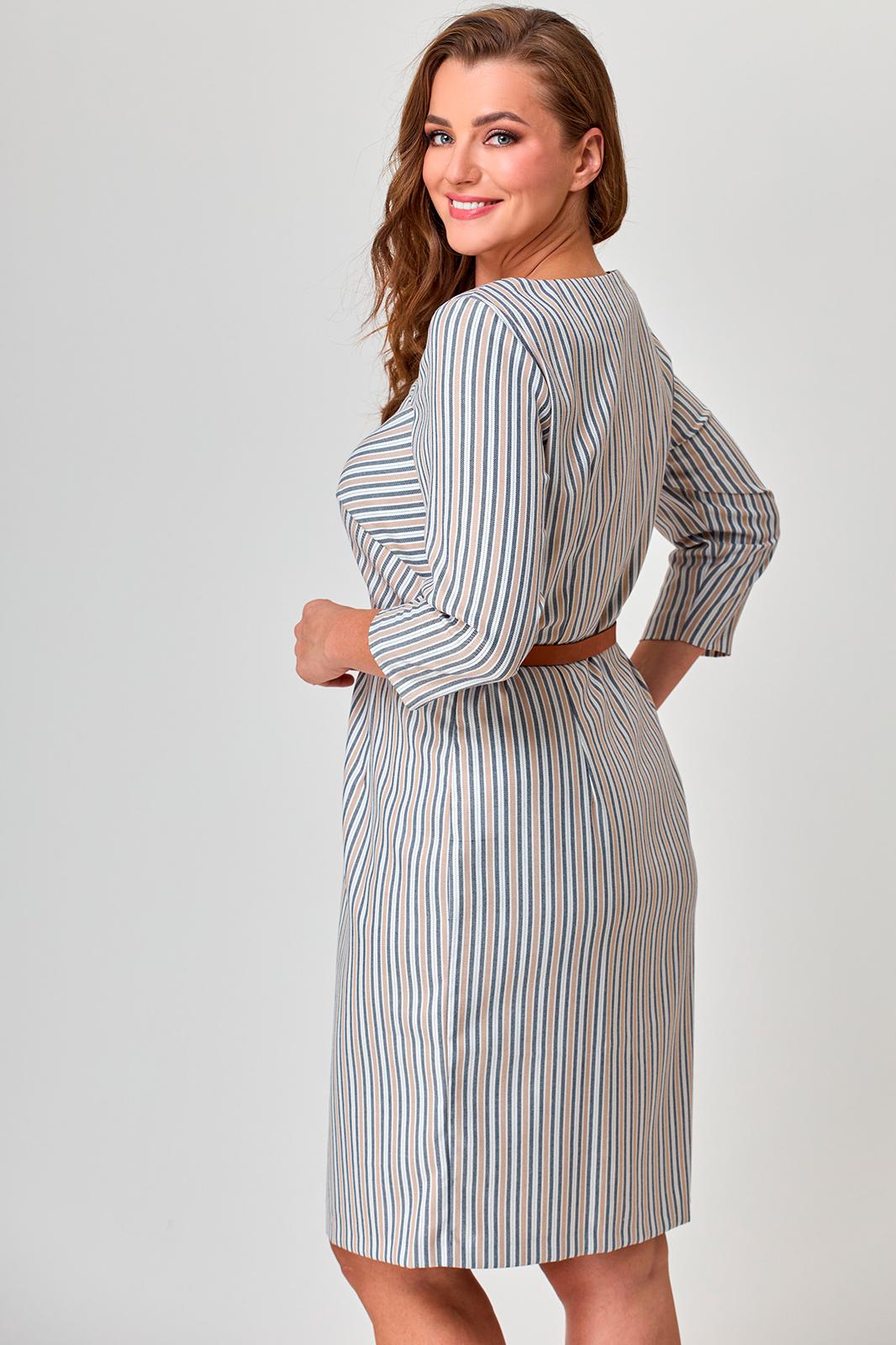 Платье женское полуприлегающего силуэта, длиной до колена. Рукав втачной, длина 3/4. Горловина в форме лодочки, обработана обтачкой. По переду фигурная кокетка. Прилегание достигнуто при помощи талиевых вытачек. Потайная застежка молния в левом боковом шве. Интересная игра с полоской, простой дизайн, лёгкость и женственность, в платье вы будете чувствовать себя на все 100.