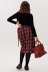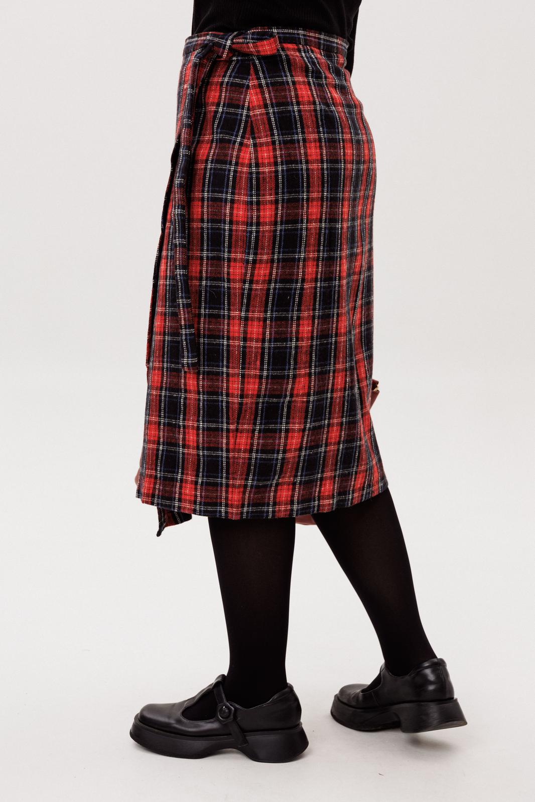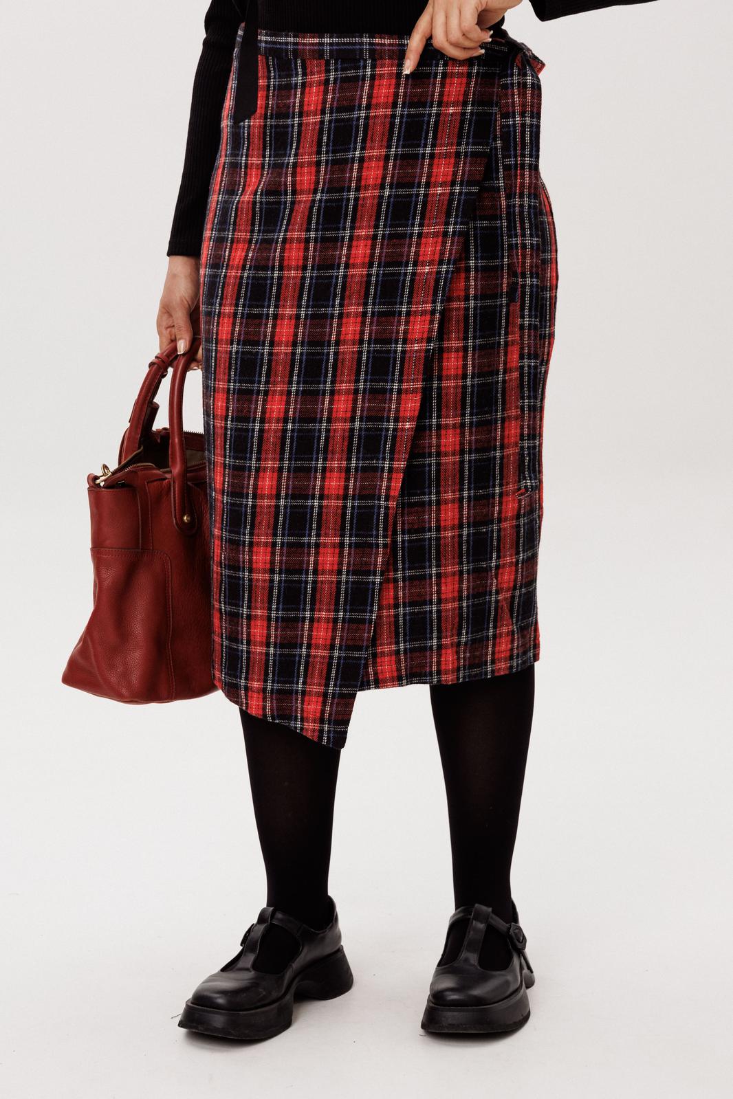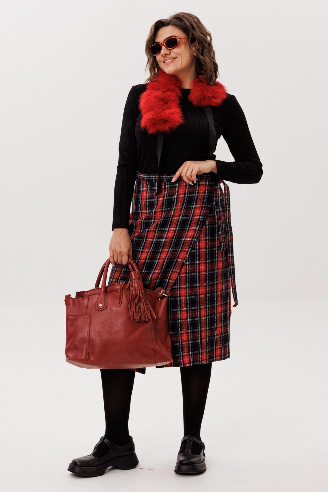 Теплая юбка на запах миди-длины — идеальный атрибут для прохладной погоды. Асимметричный край разбавляет строгость образа игривостью и придает ему смелости.