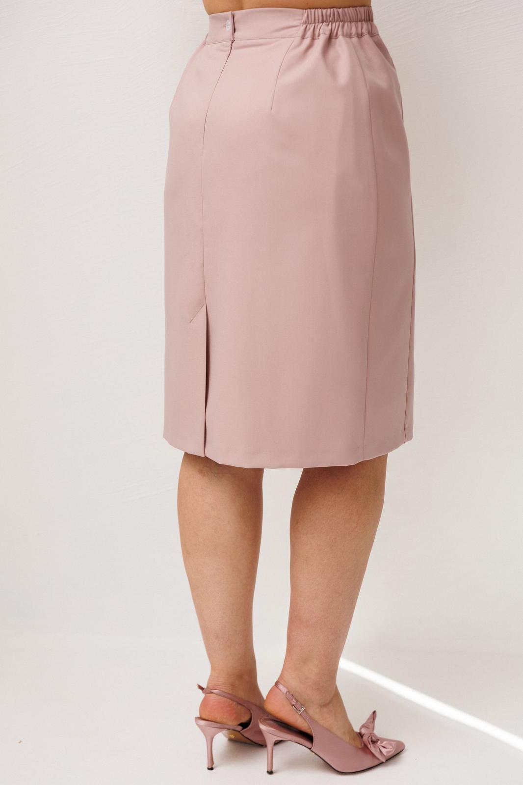 Юбка в нежном оттенке «розовая зарянка» становится естественным продолжением образа, создавая ощущение лёгкости, женственности и утончённой собранности. Аккуратные рельефы по переду формируют изящный силуэт, мягко подчеркивая фигуру и добавляя образу стройности и элегантности. Притачной пояс с деликатной резинкой по бокам обеспечивает комфортную посадку, позволяя чувствовать себя уверенно и свободно в течение всего дня, а подкладка делает юбку особенно приятной к телу и завершённой по ощущению.