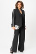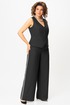 Широкие брюки с высокой посадкой, с лампасами, с поясом на резинке. В боковых швах имеются функциональные наклонные карманы.