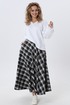 Женский юбочный комплект, состоящий из свободного джемпера и длинной широкой юбки - идеальное решение для создания стильного образа. Классическое сочетание белого джемпера с юбкой кроя полусолнце в черно-белую клетку.