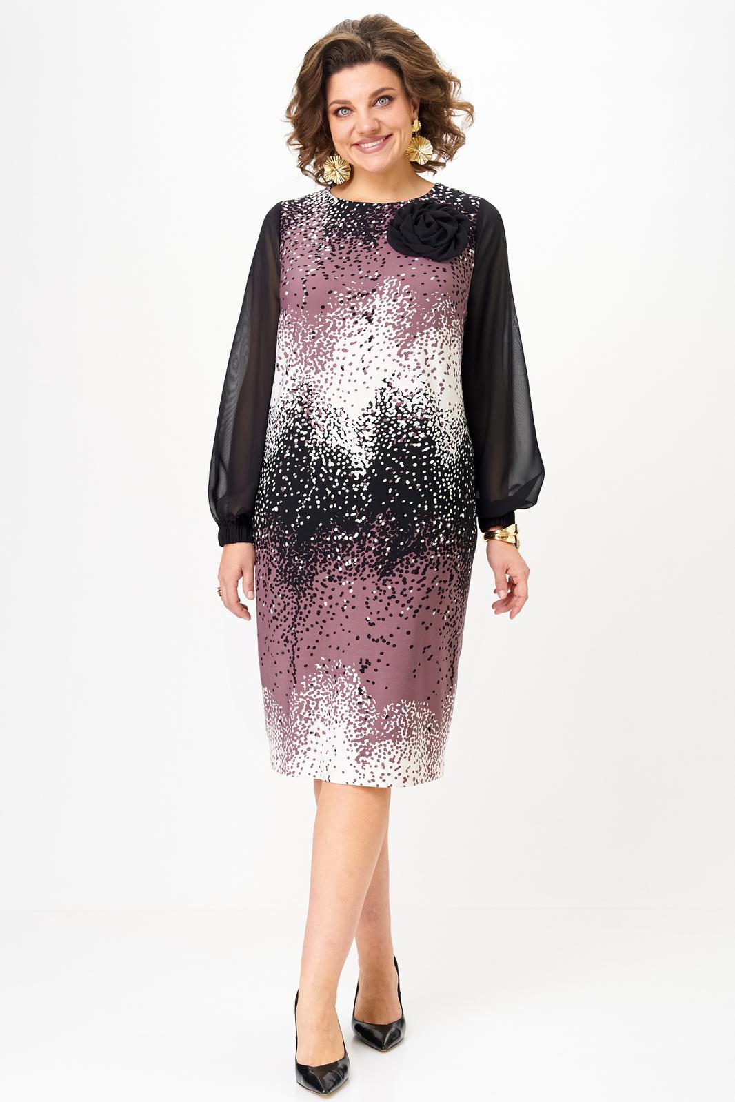 Элегантное платье с прозрачными рукавами станет идеальным выбором для деловой встречи или торжественного мероприятия. Платье выполнено из эластичного трикотажа масла. Свободное облегание и длина чуть ниже колена подчеркнут вашу элегантность и женственность, а широкие рукава из шифона добавят образу легкость и изящество.