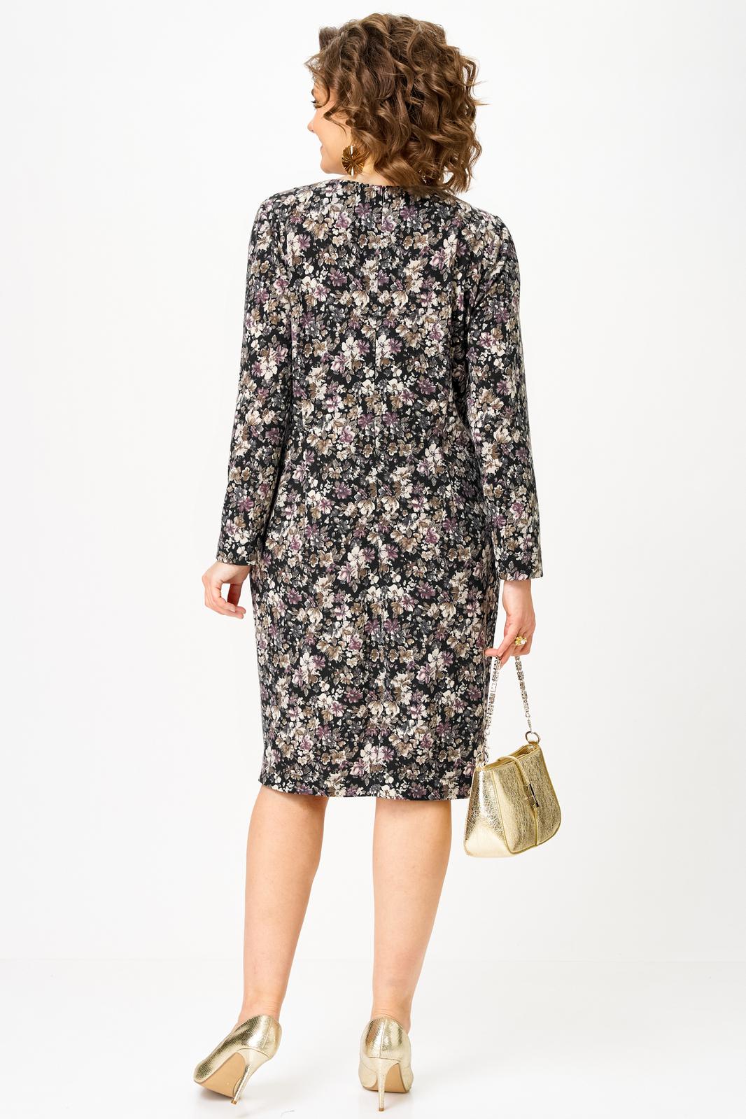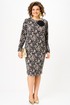 Платье полуприлегающего силуэта с округлым вырезом горловины. Перед с нагрудными вытачками. Спинка с талиевыми вытачками, разрезом и застежкой на молнию в среднем шве. Рукав втачной прямой длинный.
