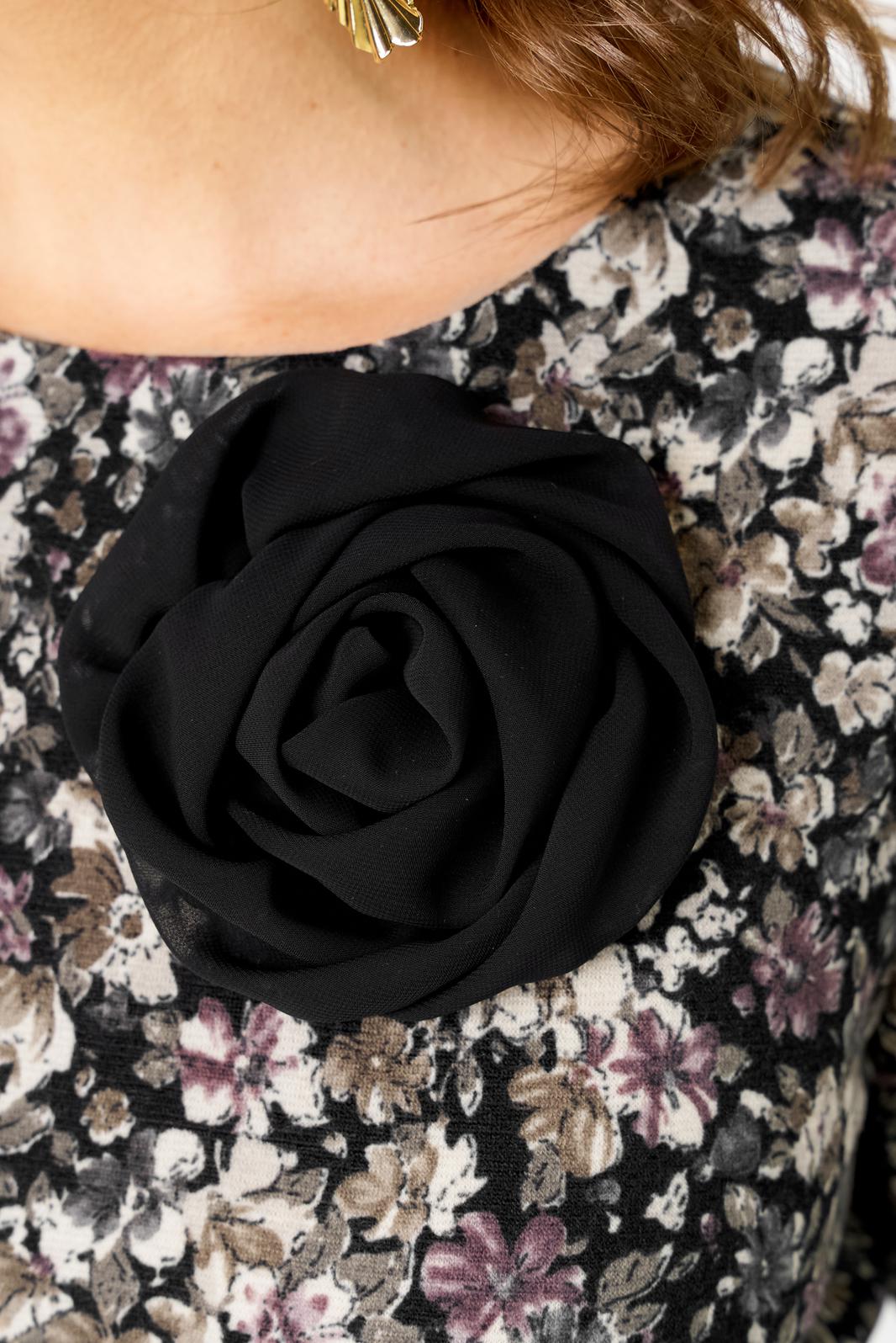 В комплекте к платью прилагаются съемное украшение-брошь в виде цветка и пояс, который поможет создать акцент на талии.