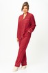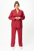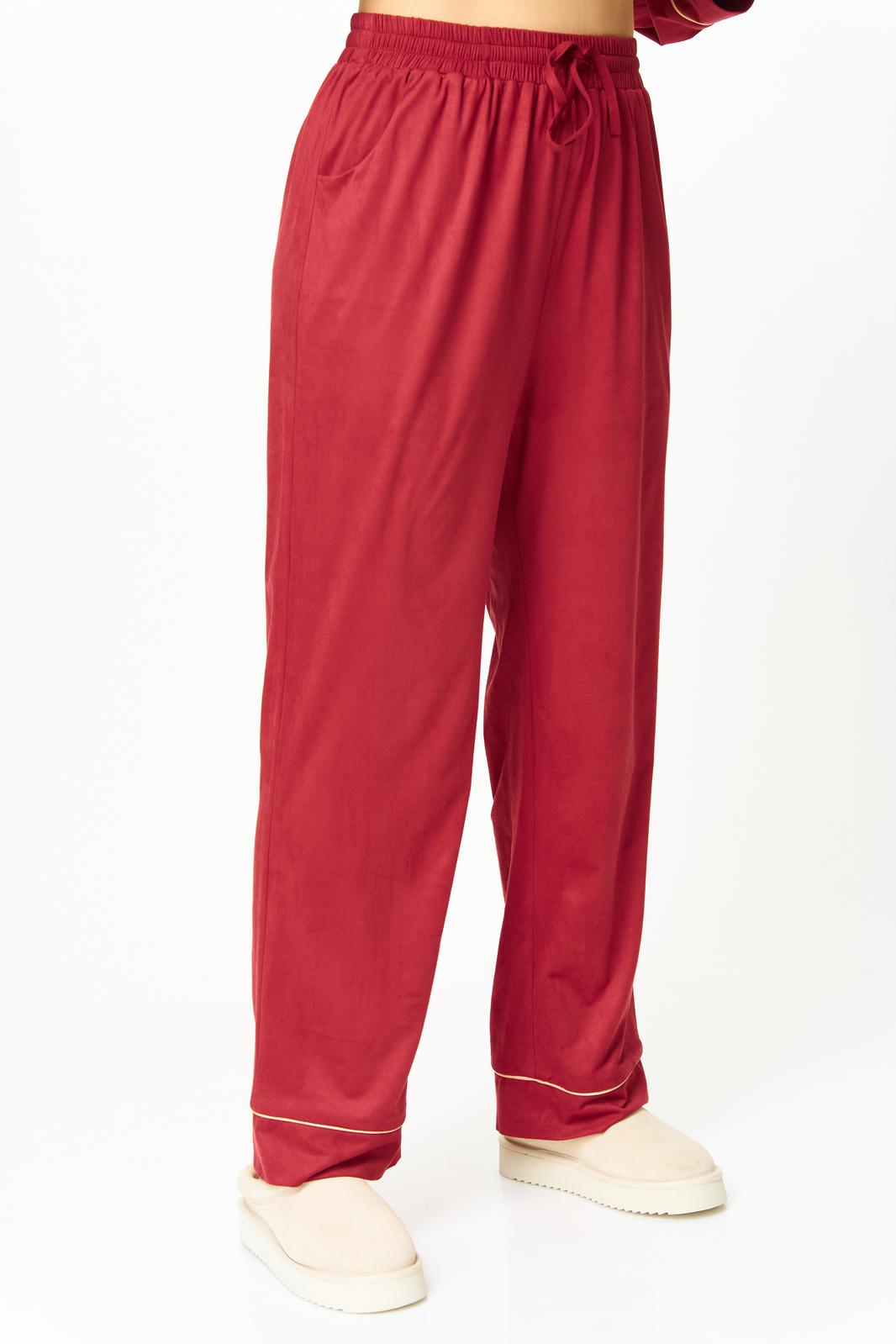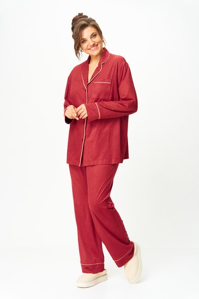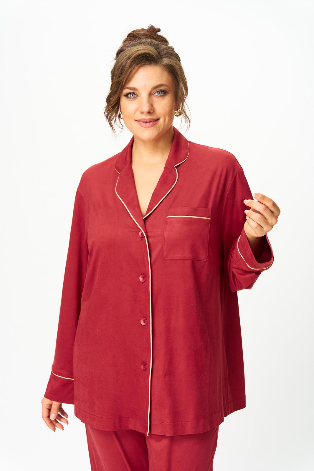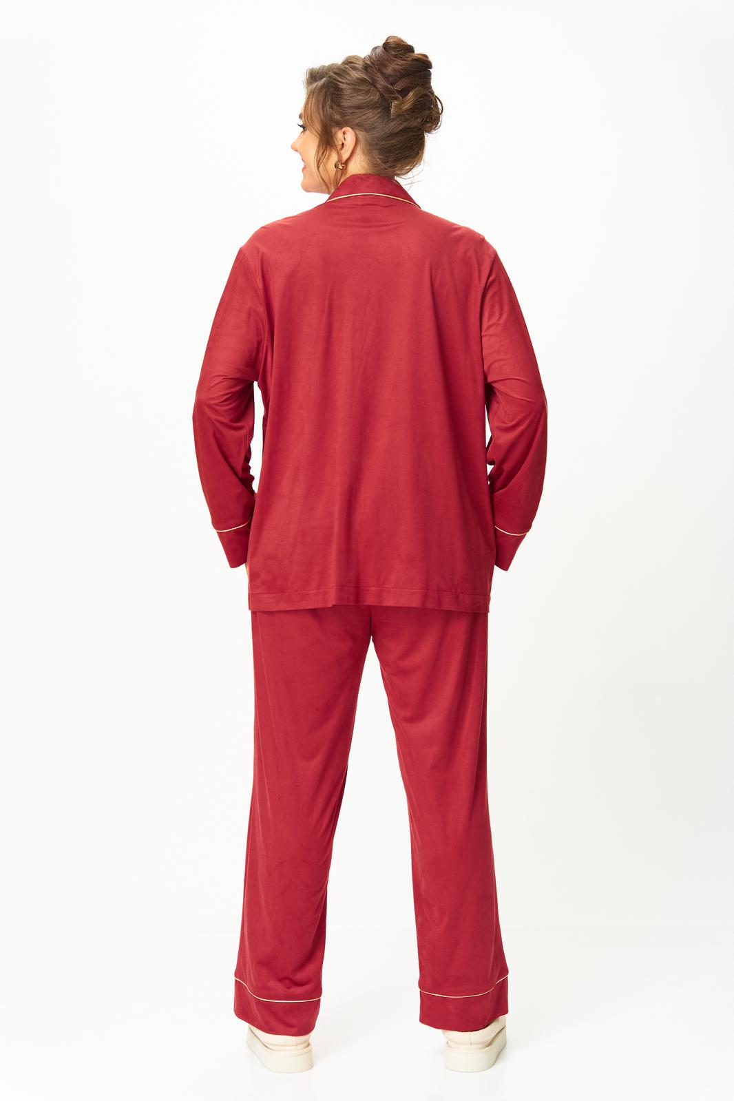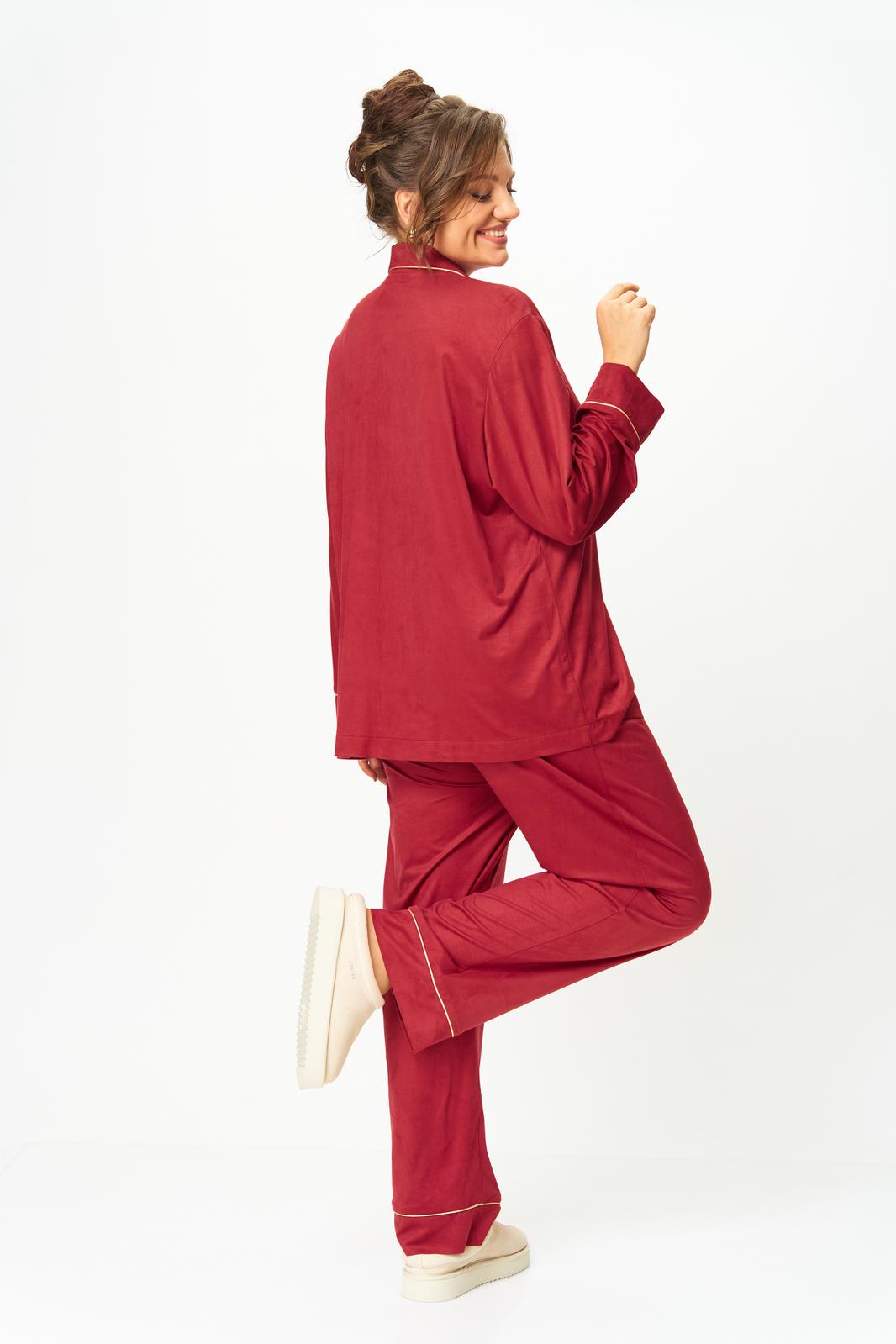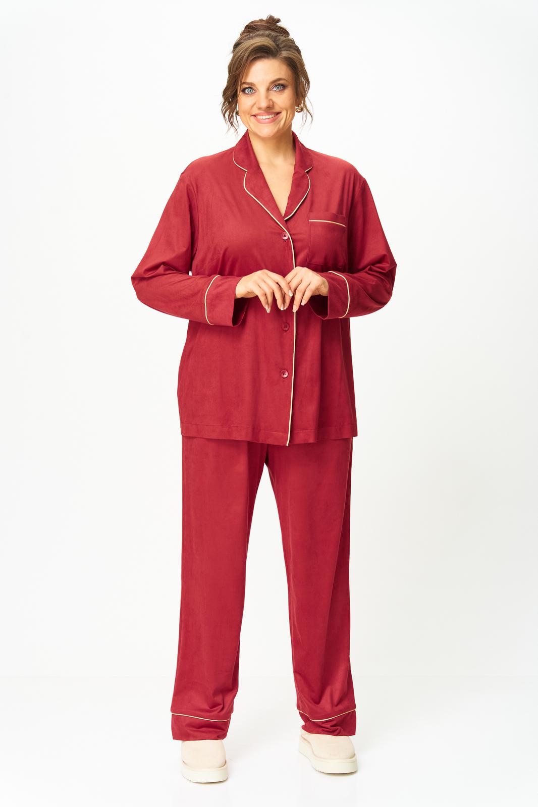 Костюм женский из текстильного полотна состоящий из жакета и брюк . Жакет без подкладки прямого силуэта на центральную застежку на петли и пуговицы , воротник пиджачного типа . Брюки с высокой посадкой на резинке с боковыми карманами