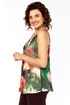 Топ на бретелях полуприлегающего силуэта. Топ двойной верх выполнен из ткани с дизайном, низ однотон. Перед покроен по косой. Бретели регулируются. Длина по боковому-45см.Параметры модели: обхват груди-98см, обхват бедер-110см, размер топа на модели 50.