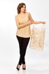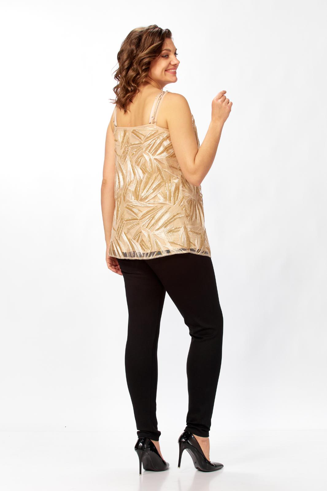Топ на бретелях полуприлегающего силуэта. Топ состоит из двух топов: верхний выполнен из сетки с вышивкой с пайетками, нижний из однотонной вискозы(штапель). Перед покроен по косой. Бретели регулируются. Каждый из топов можно носить по отдельности и комбинировать с другими предметами гардероба. Длина по боковому-45см.Параметры модели: обхват груди-98см, обхват бедер-110см, размер топа на модели 50.