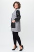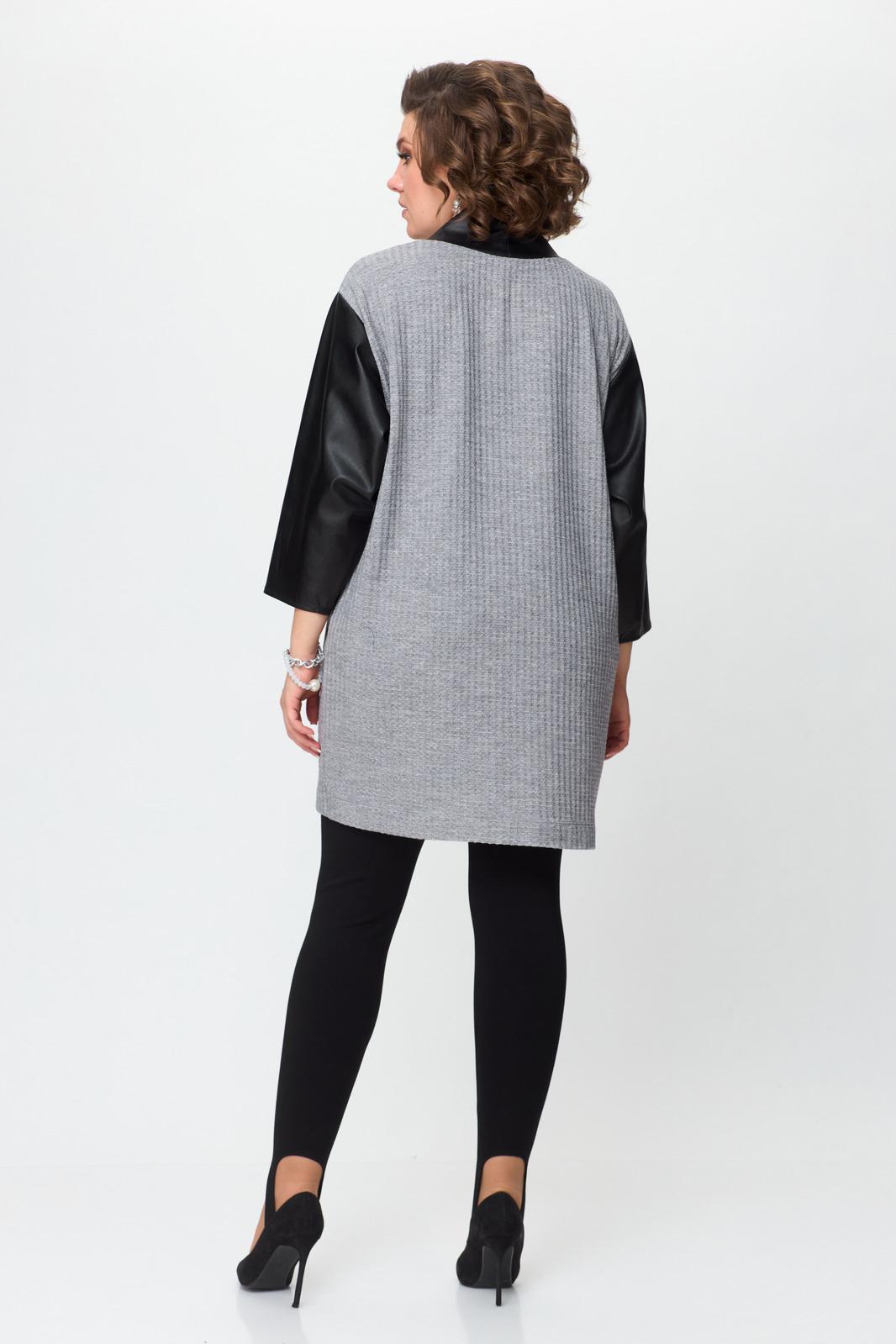 Кардиган прямого силуэта. Спинка и перед выполнены из вязаного полотна. Рукава и планка из экокожи. На переде настрочены накладные карманы из экокожи.Между передом и планкой вставлен шнур-завязка. на концах шнура черные металлические наконечники. Плечо спущенное, рукав 3/4. Длина рукава-45см, длина плеча+планка-22см, длина по спинке(от пересечения плечо-шея)-92см