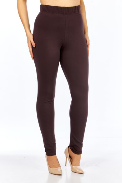 Леггинсы выполнены из плотного трикотажа, с высокой посадкой до талии. Пояс цельнокроеный на широкой резинке(4-5см) Низ леггинсов прямой, штанина внизу удлиненная. Леггинсы отшиваются в двух ростах 164 и 170.