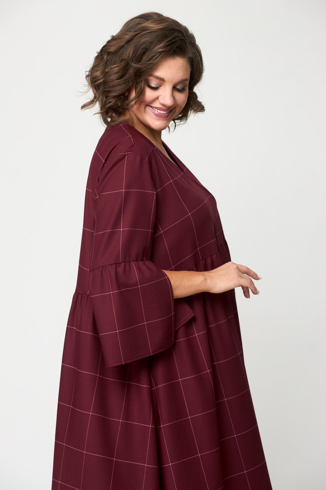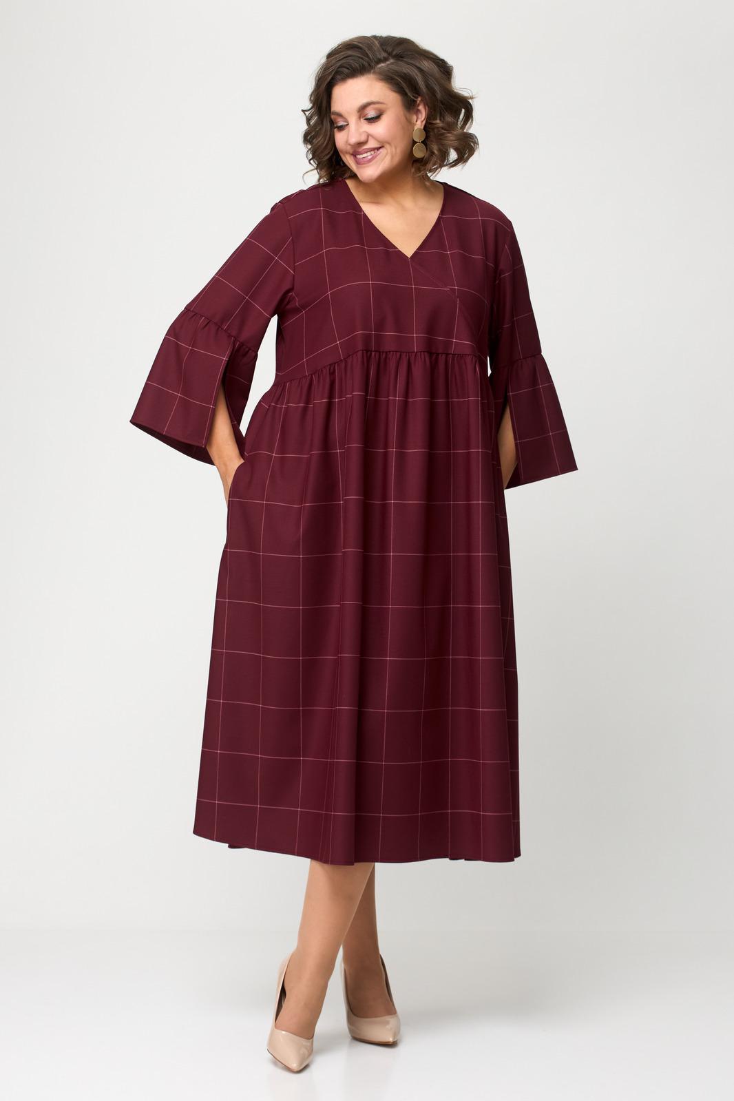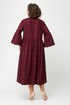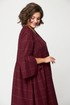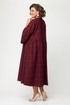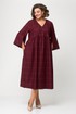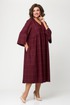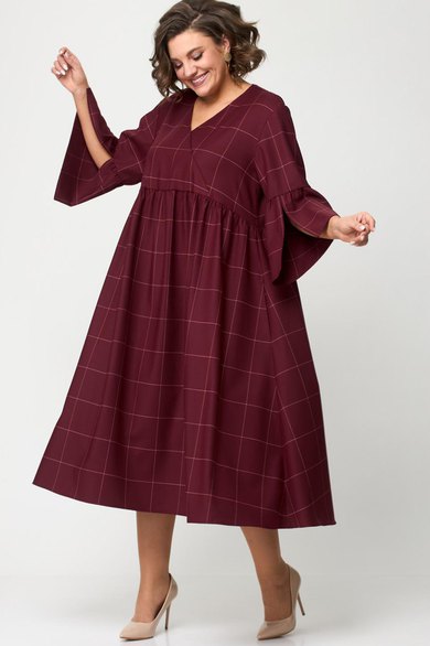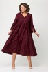 Платье А-силуэта. На переде и спинке есть подрез, по переду подрез чуть ниже центра груди по спинке плавно переходит ниже. По переду и спинке от подреза идет сборка. В верхней части переда имитация запаха, вырез V-образный. Спущенное плечо, рукав с подрезом выше локтя, от подреза по нижней детали рукава идет сборка и разрез. В боковых швах карманы. Длина плеча-14см, длина рукава до подреза-25см, длина рукава до низа-47см, длина по спинке до подреза-43, длина по спинке до низа-125см.