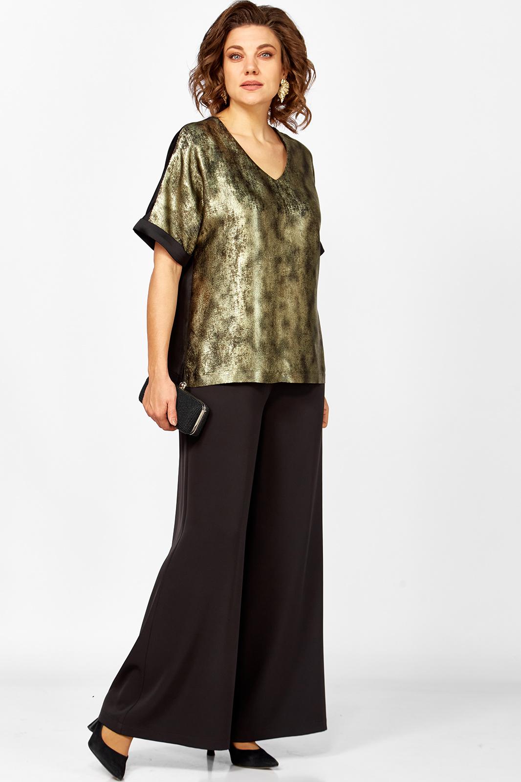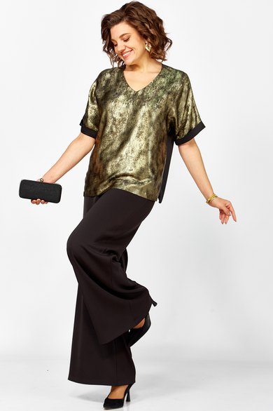 Нарядный женский двухпредметный комплект состоит из свободной блузы и широких брюк палаццо .