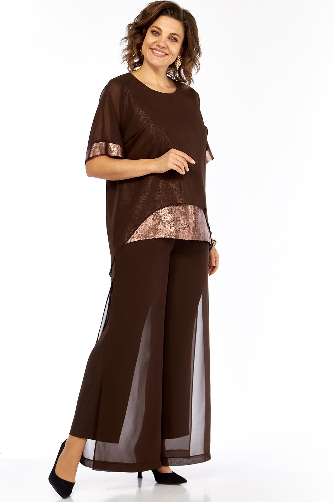 Нарядный женский костюм состоит из двойной блузы и двойных брюк.