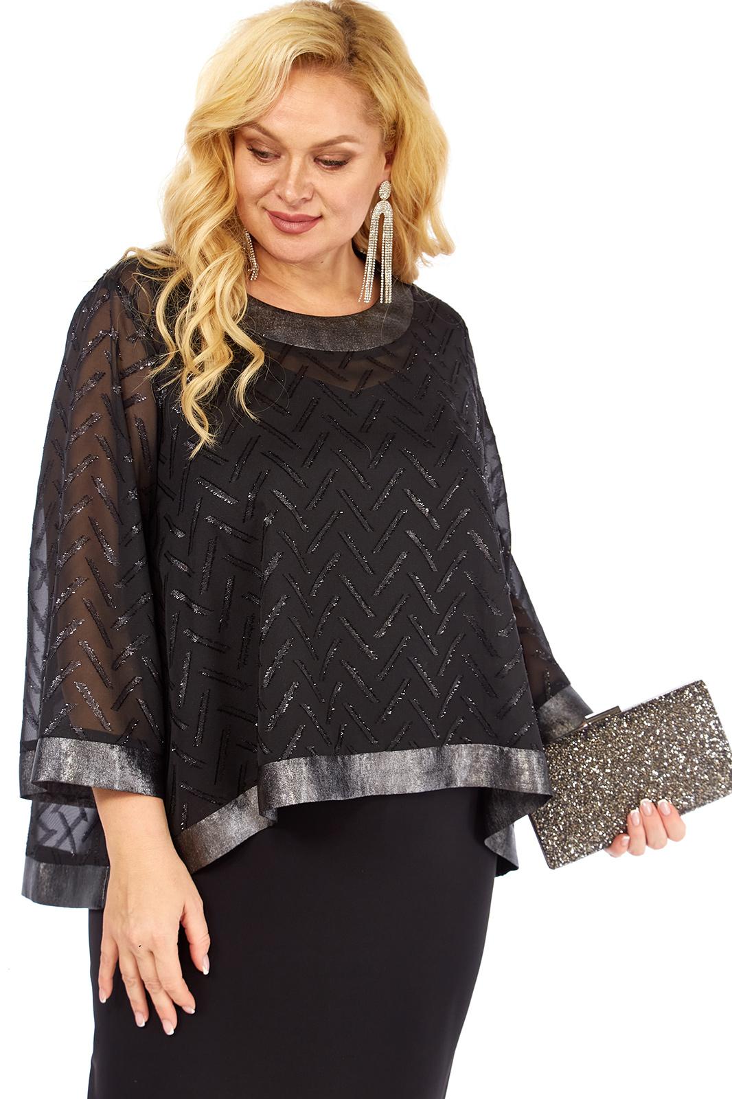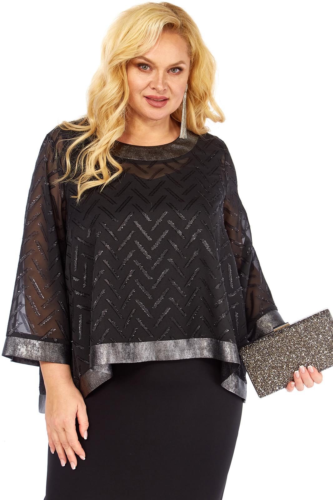 Нарядный женский двухпредметный комплект состоит из блузы ,выполненной из шифона двух видов,и платья,выполненного из однотонной плательно-костюмной ткани.