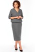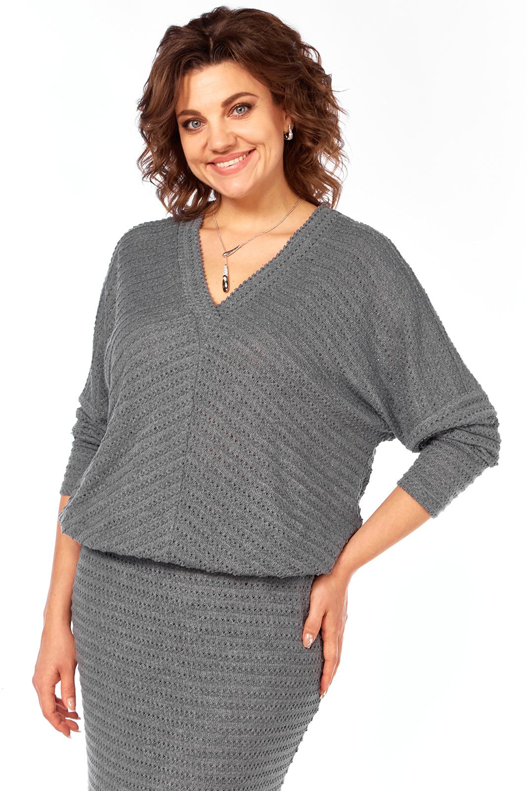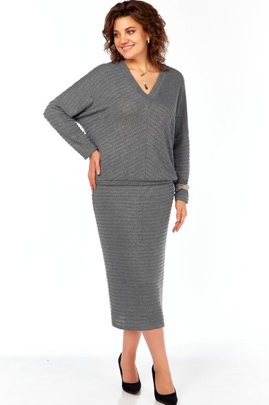 Женский двухпредметный костюм,состоящий из джемпера и юбки, выполнен из фактурного трикотажного полотна с геометрическим рисунком.