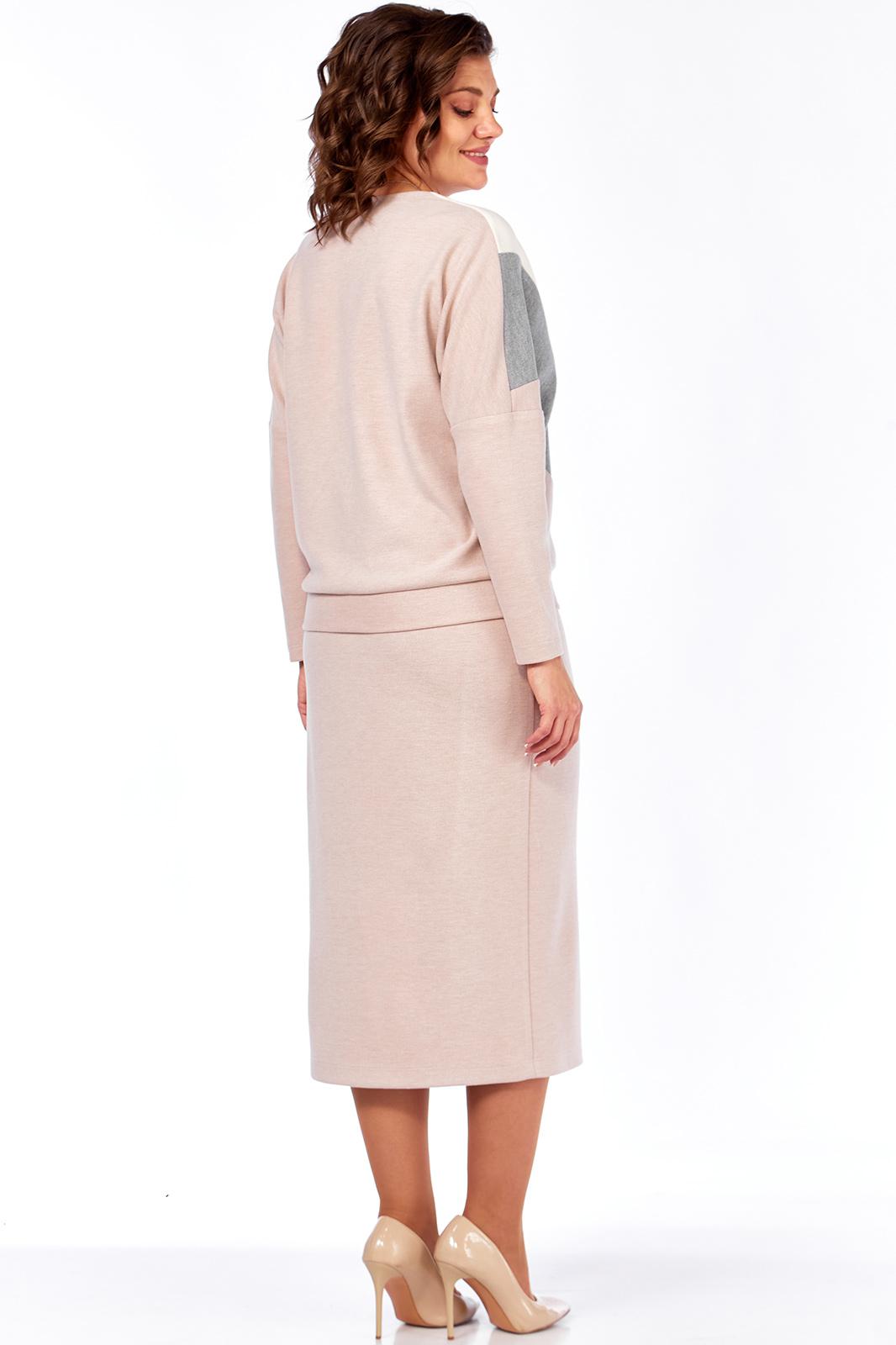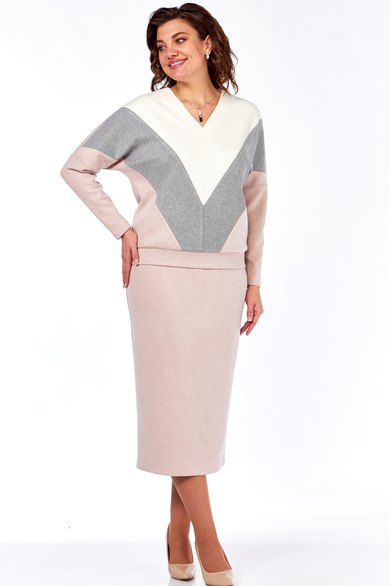 Костюм женский двухпредметный состоит из свободного джемпера и длиной юбки,выполнен из трикотажного полотна под вельвет в мелкий рубчик 3 цветов.