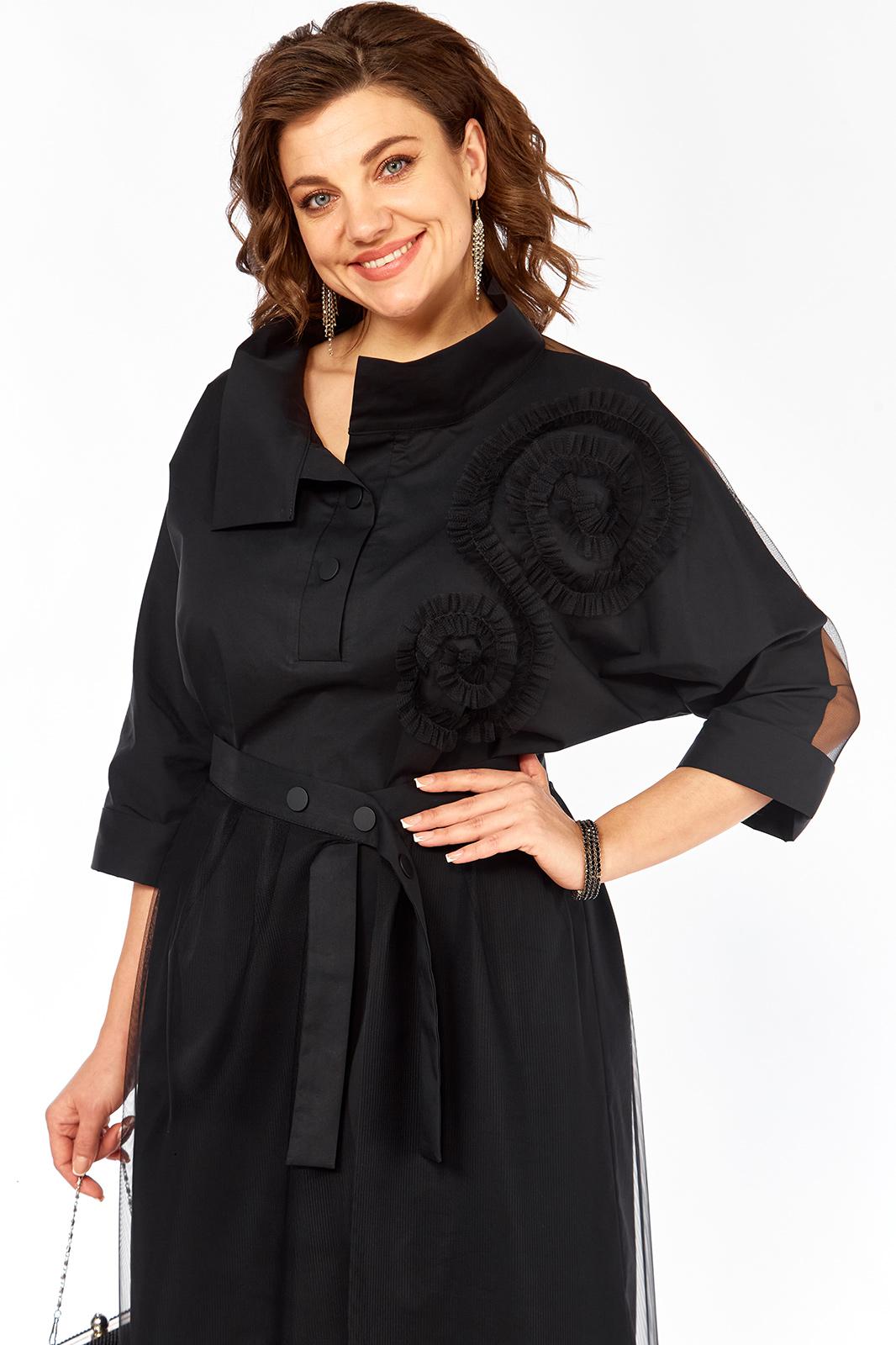 Нарядный женский комплект состоит из свободного платья-рубашки ,выполненного из плательно-костюмной ткани Шуршун и прозрачной юбки назапах, выполненной из сетки.
