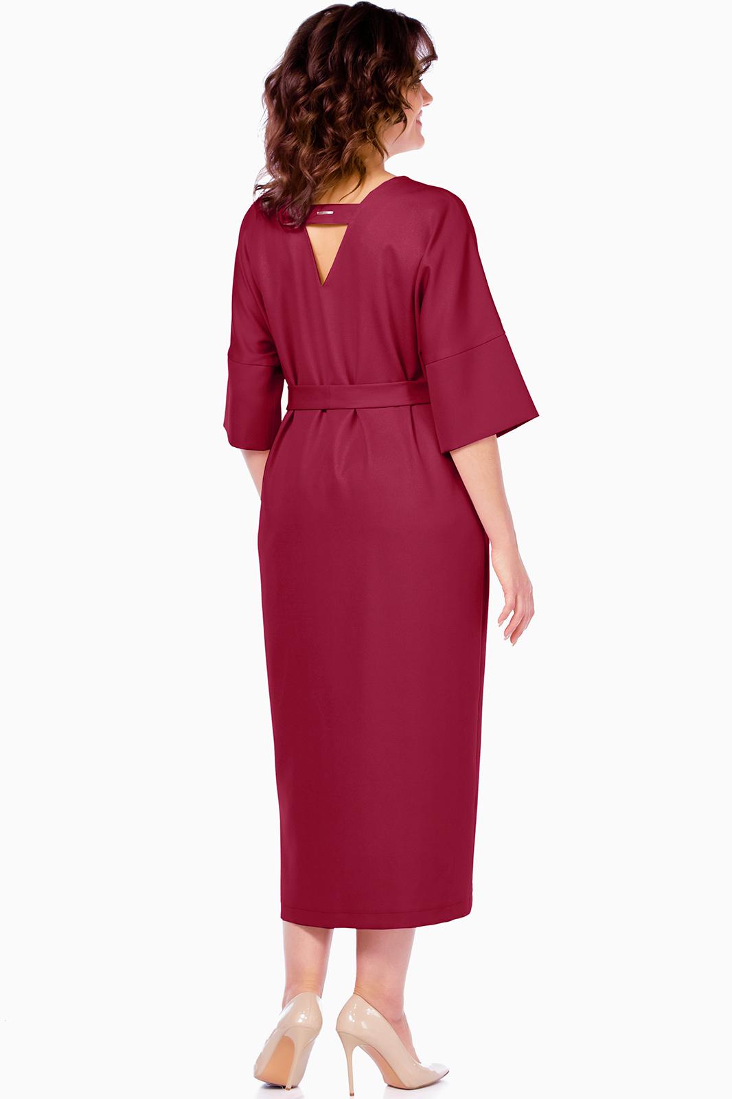 Женское нарядное платье выполнено из плательно-костюмной однотонной ткани с блестящим напылением. Перед со средним швом, заканчивающимся разрезом.Спинка цельная.Рукава цельнокроеные с широкими двойными манжетами, длиной 3/4.Вырез горловины по переду круглый ,а по спинке V-образный с планкой и декоративной пластинкой, обработан обтачками.