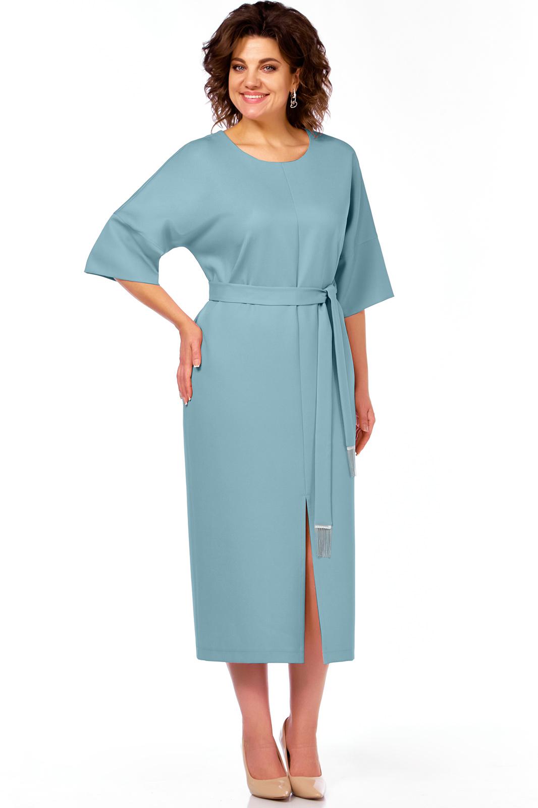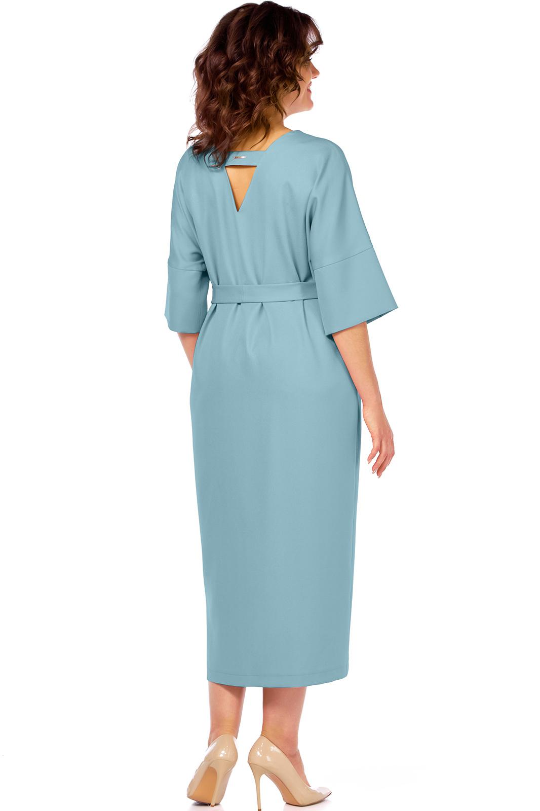 Женское нарядное платье выполнено из плательно-костюмной однотонной ткани с блестящим напылением. Перед со средним швом, заканчивающимся разрезом.Спинка цельная.Рукава цельнокроеные с широкими двойными манжетами, длиной 3/4.Вырез горловины по переду круглый ,а по спинке V-образный с планкой и декоративной пластинкой, обработан обтачками.