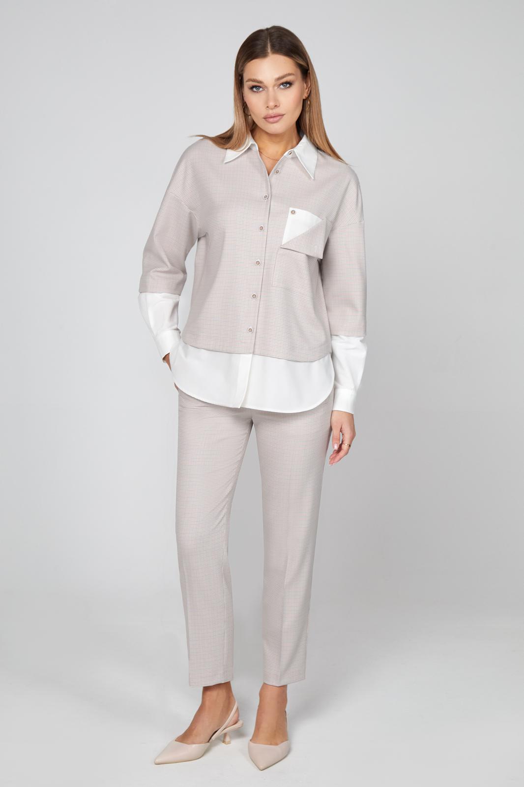 Лаконичные брюки со стрелками выполнены из приятной к телу испанской ткани с добавлением вискозы с интересным контрастным узором в виде мелкой гусиной лапки. Модель на притачном поясе с застежкой на молнию и петлю- пуговицу и дополнена кулисой и практичными вертикальными карманами с листочками. Эластичная часть пояса обеспечивает комфортную посадку на талии. Брюки отлично комплектуются с рубашкой или свитшотом из коллекции, формируя стильный сет на каждый день.