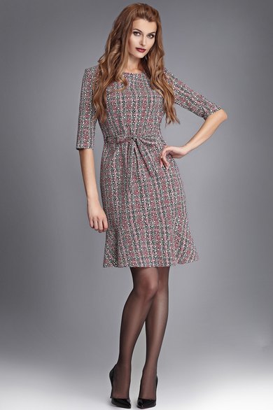 Платье приталенного силуэта, на подкладке, с застежкой по спинке на потайную молнию. Пояс выполнен из основной ткани.