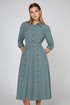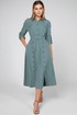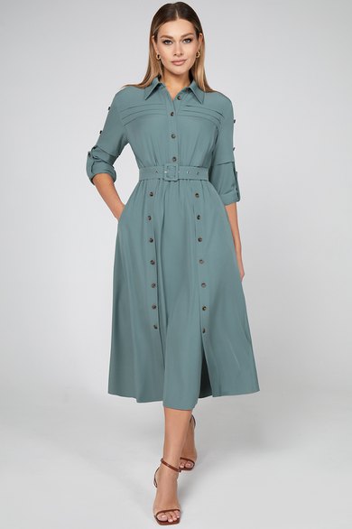 Стильное платье-рубашка с длинным рукавом и расклешенным кроем — идеальное сочетание легкости и элегантности. Модель со спущенной линией плеч выполнена из приятной вискозной испанской ткани и дополнена интересными элементами, придающими ей спортивный и динамичный характер. Отложной воротник и планка на пуговицах добавляют очарования, а рукава с манжетами можно закатать и зафиксировать при помощи паты и пуговицы, для создания непринужденного образа. Вертикальные складки , декоративные планки по юбке платья и отделочные пуговицы подчеркивают оригинальность этой модели, а карманы в боковых швах добавляют функциональности. Скрытая резинка на талии обеспечивает удобную посадку по фигуре, а пояс в тон с D-пряжками красиво подчеркивает талию.