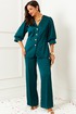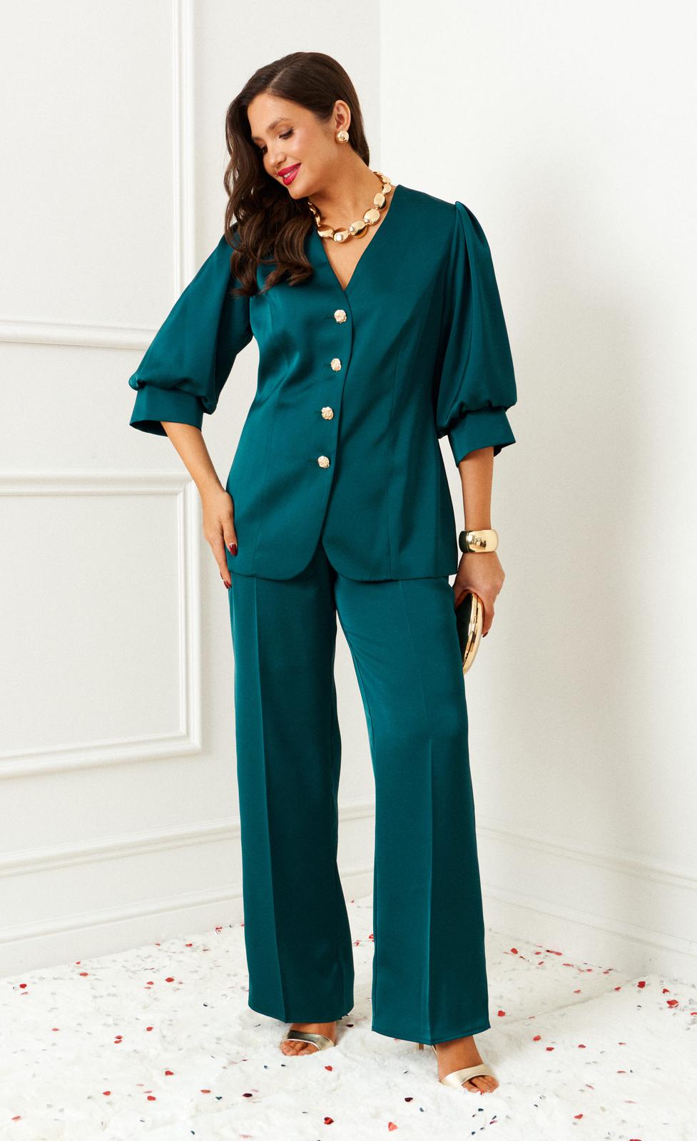 Костюм женский 2-ух предметный: жакет и брюки в деловом стиле. Выполнен из роскошного полотна «атлас» нежной и блестящей фактуры.