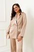 Элегантный костюм состоит из 2-х предметов одежды: жакета и брюк. Выполнен из шелковистого атласного полотна. Ткань легко драпируется и очень выгодно и дорого подчеркивает образ.
