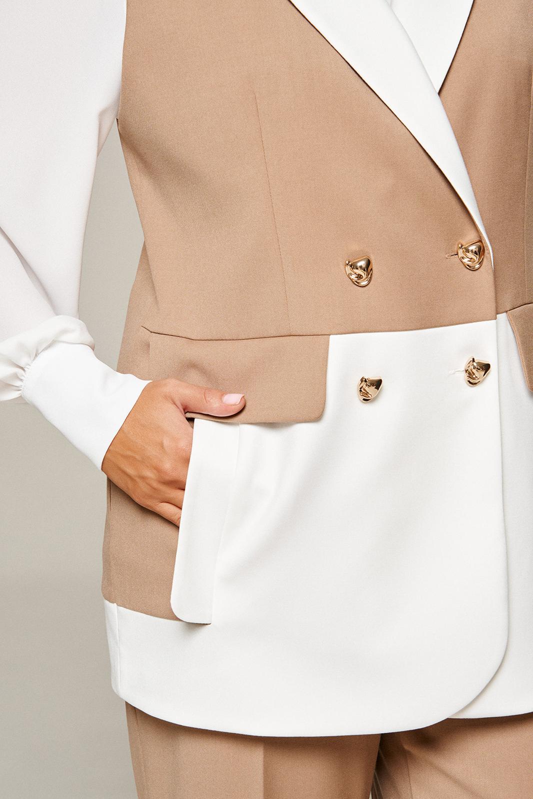 Жилет полуприлегающего силуэта двубортный на подкладке.