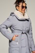 Капюшон съемный (на кнопках) умеренного объема. По периметру капюшона протянут шнур в цвет изделия с декоративными металлическими фиксаторами.