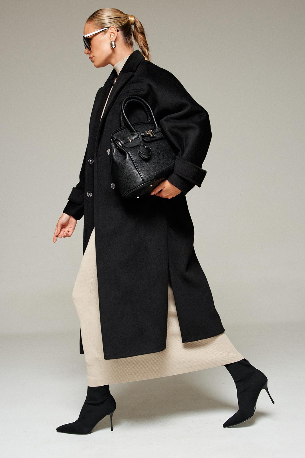 Пальто выполнено из шерстяной ткани, которая обеспечивает теплоизоляцию и защиту от ветра и влаги, подходит для межсезонья и теплой зимы. Двубортное, на подкладке. Изделие рассчитано на температурный режим от +10 до -5 градусов. Модель прямого силуэта актуального покроя «летучая мышь»; предназначена для повседневного использования.