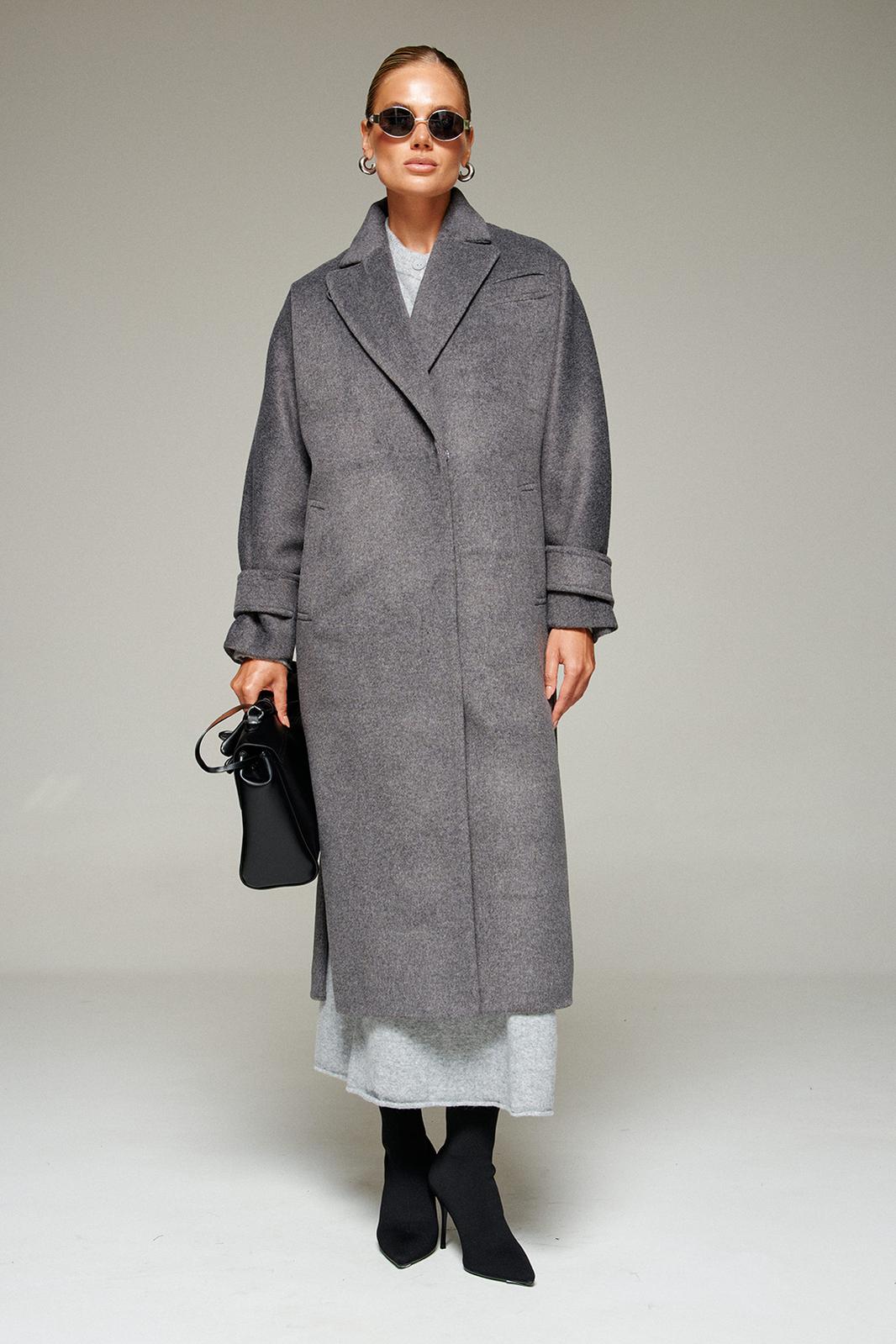 Пальто выполнено из шерстяной ткани, которая обеспечивает теплоизоляцию и защиту от ветра и влаги, подходит для межсезонья и теплой зимы. Двубортное, на подкладке. Изделие рассчитано на температурный режим от +10 до -5 градусов. Модель прямого силуэта актуального покроя «летучая мышь»; предназначена для повседневного использования.