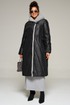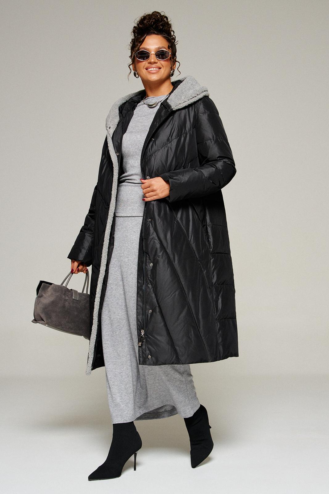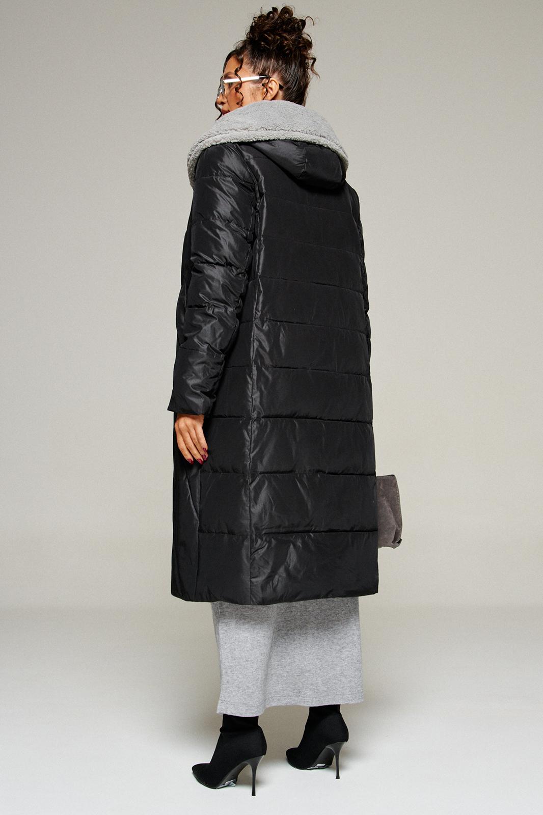 Застежка центральная на двустороннюю молнию от верха до низа и кнопки. Под капюшоном спереди настрочен дополнительный элемент застежки из экокожи.