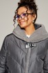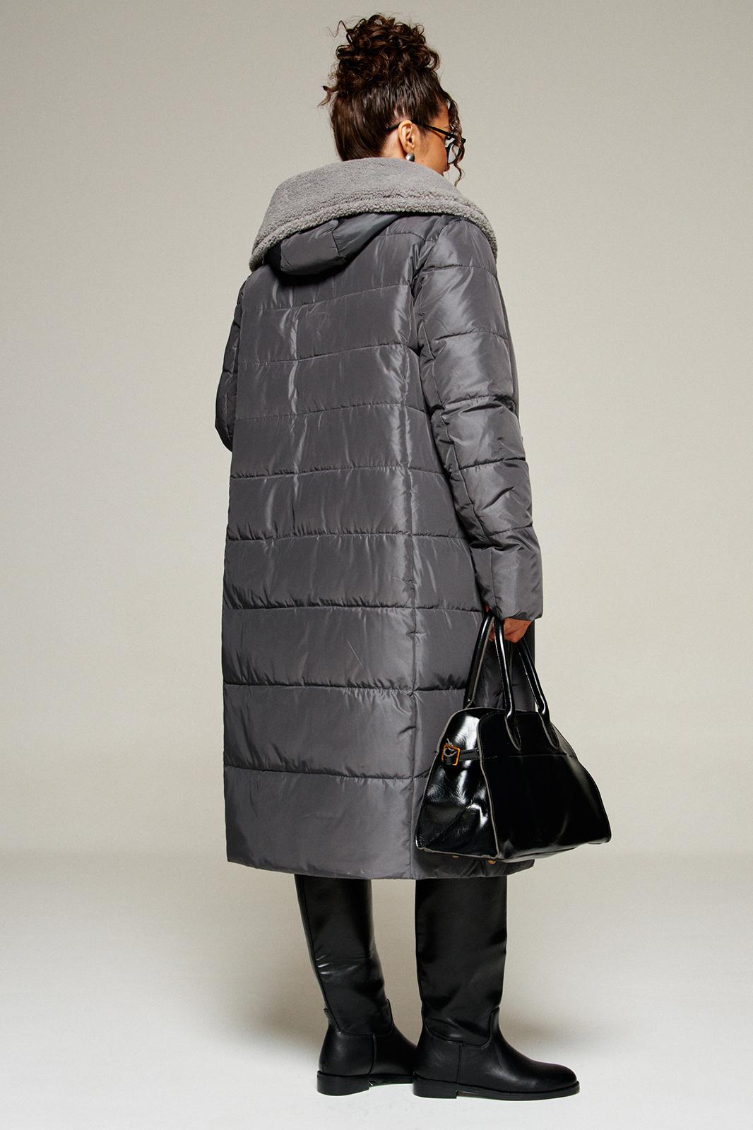 Застежка центральная на двустороннюю молнию от верха до низа и кнопки. Под капюшоном спереди настрочен дополнительный элемент застежки из экокожи.