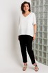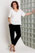 Базовая блуза свободного кроя с V-образным вырезом и укороченным втачным рукавом - это незаменимая модель, которая позволит создать множество безупречных образов. Она идеально сочетается с брюками, юбками, шортами, прекрасно смотрится в сочетании с жакетом, кардиганом, накидкой. Блуза выполнена из нежной, струящейся текстильной ткани.