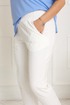 Брючки прямого кроя выполнены из хлопчатобумажного трикотажа. Имеют необычный крой. На задней части, две отрезные кокетки, которые грамотно создают нужные линии и делают их посадку идеальной.