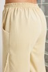 Модель изумительно стройнит и вытягивает силуэт благодаря выверенным лекалам и отличной посадке. Пояс модели выполнен на резинке с островком. По бокам брюк - карманы хулиганы. Низ брюк обработан подгибкой.