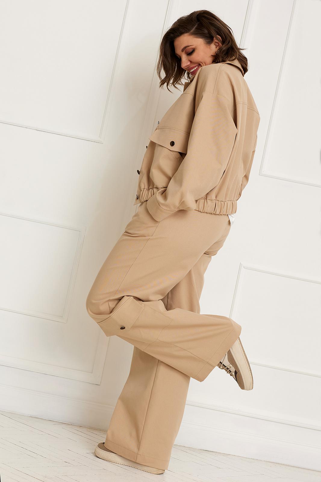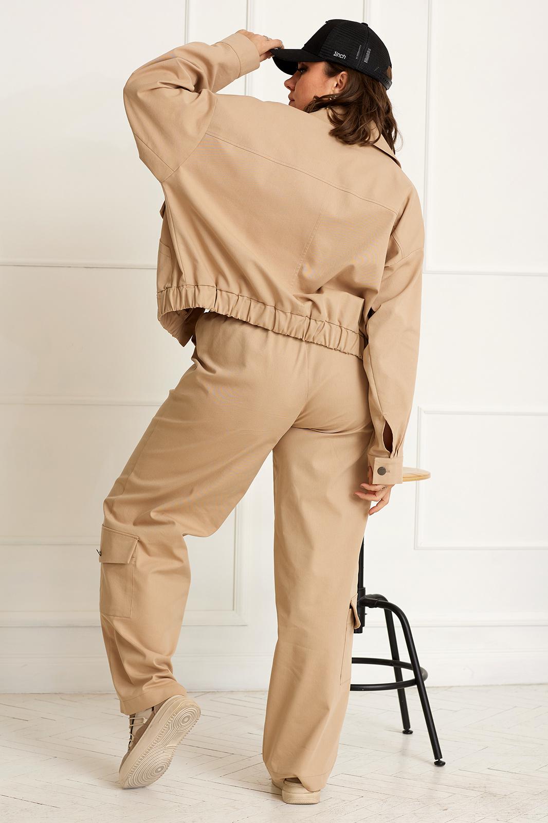 Комплект свободного кроя, состоящий из бомбера и брюк. Представляет собой стильное и универсальное сочетание для создания модного образа. Джинсовый, хлопковый материал со стрейчем, добавляет нотку кэжуал-стиля и придаёт образу свежий и молодёжный вид.