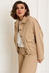 Функцию застёжки передней части, выполняют стильные металлические пуговицы. Спинка состоит из нескольких разрезных деталей. Рукав втачной, со спущенной линией плеча и притачной манжетой, имеющей застёжку на пуговицу.