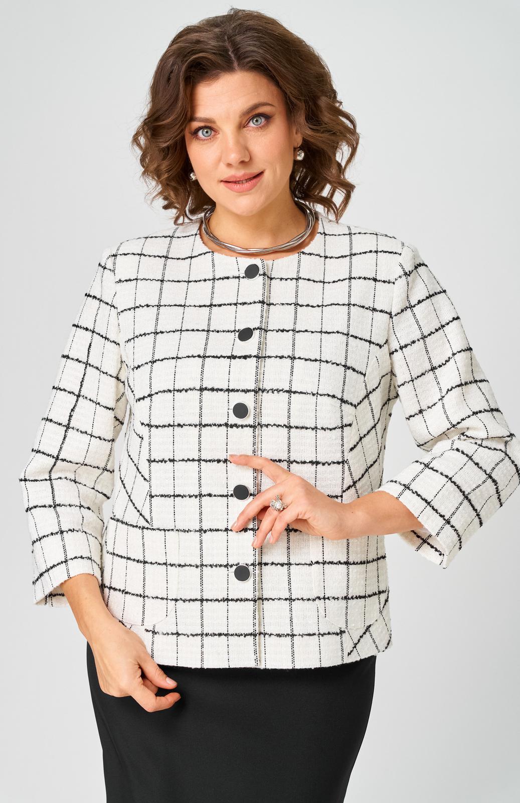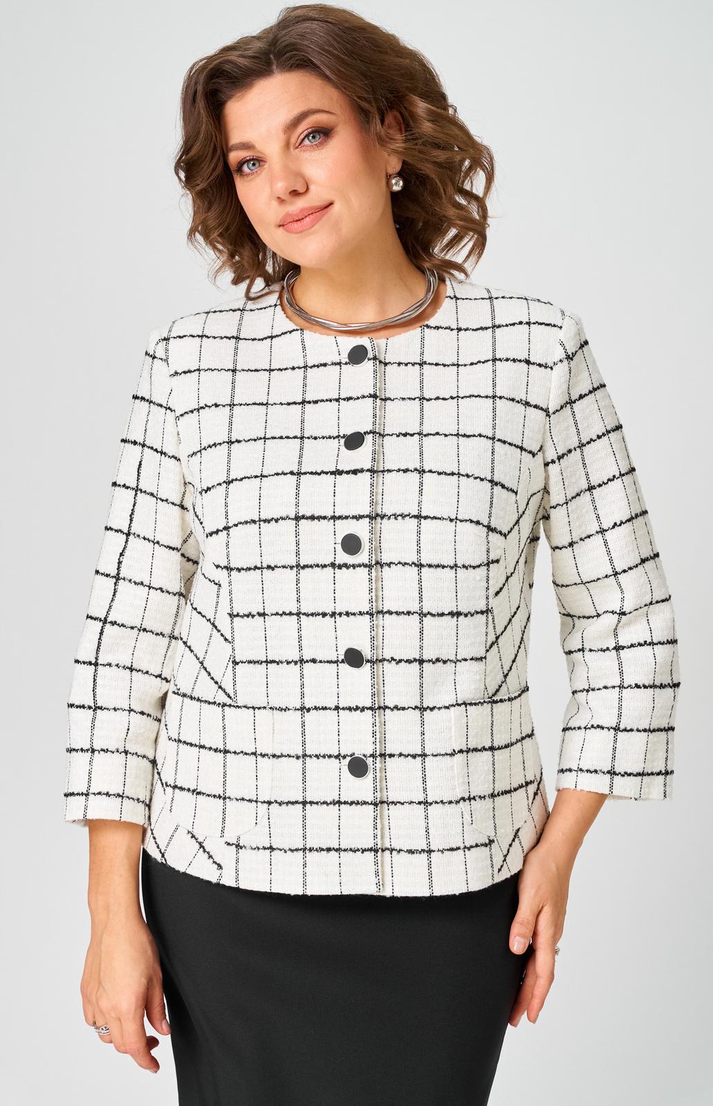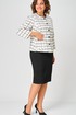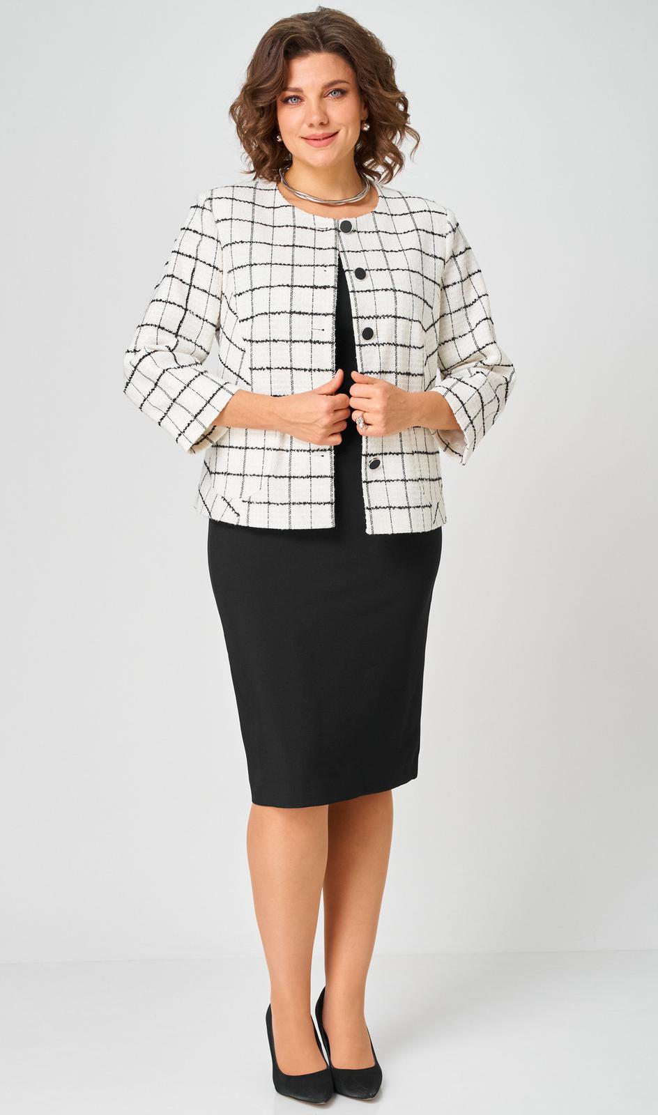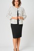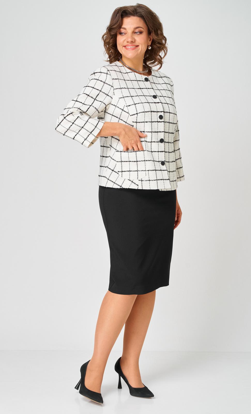 Элегантный комплект на все случаи жизни: классический жакет из твида и прямая юбка. В жакете классический округлый вырез горловины, центральная застежка на петли-пуговицы и функциональный накладной карман добавляют образу солидности и завершенности.Укороченный двухшовный рукав — современный и практичный вариант. Полная подкладка не дает жакету тянуться и обеспечивает комфорт при носке. Длина жакета по спинке 56 см, длина рукава 52см. Юбка-прямой стройнящий силуэт, верхний срез на обтачке, потайная молния и удобная шлица. На подкладке. Длина по боковому шву 65 см.